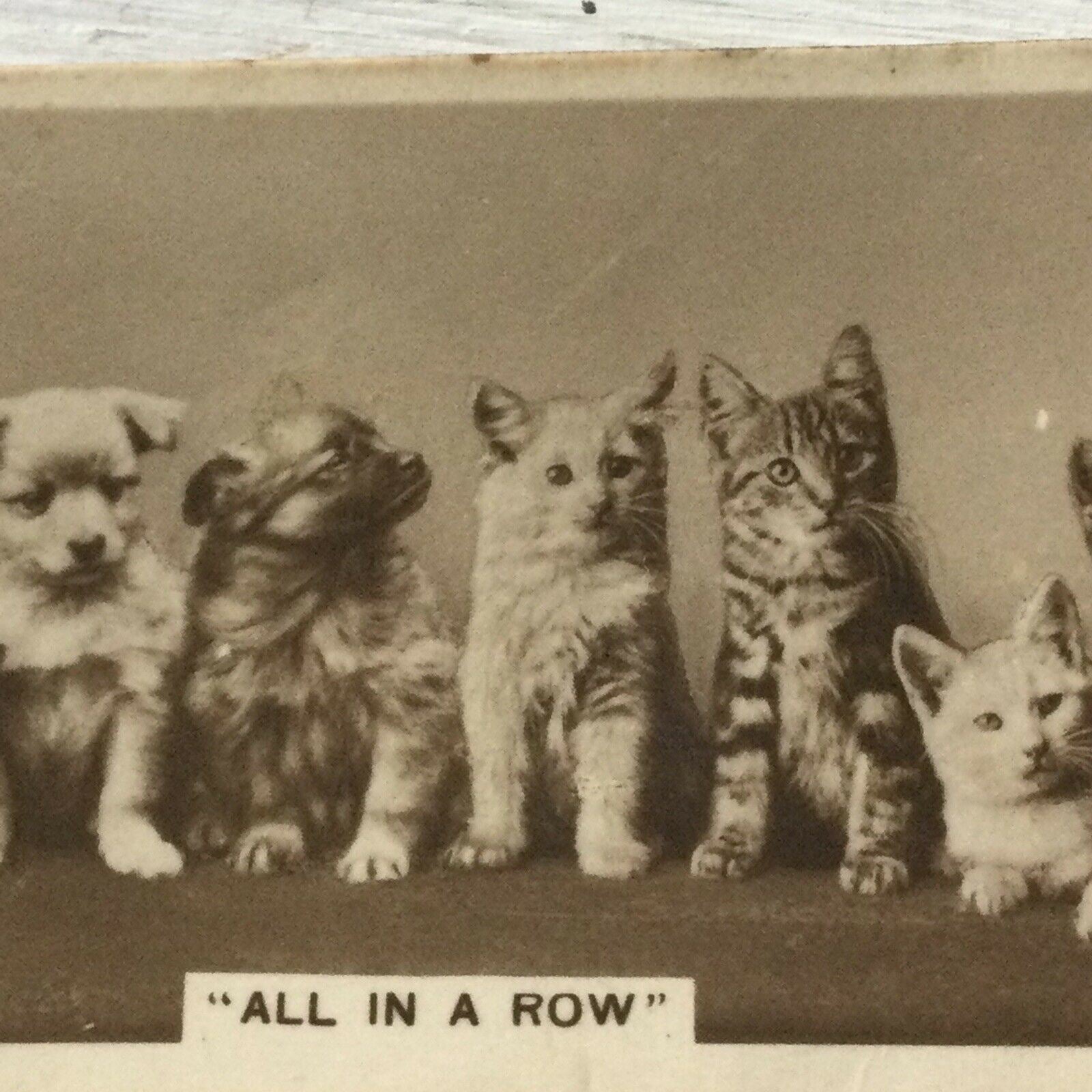 De Reszke Cigarette Card Series 6 no.13 All in a row. Cute cats dogs photo