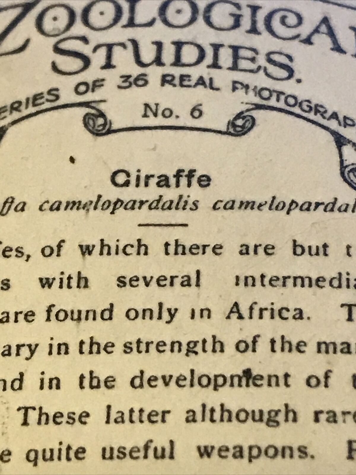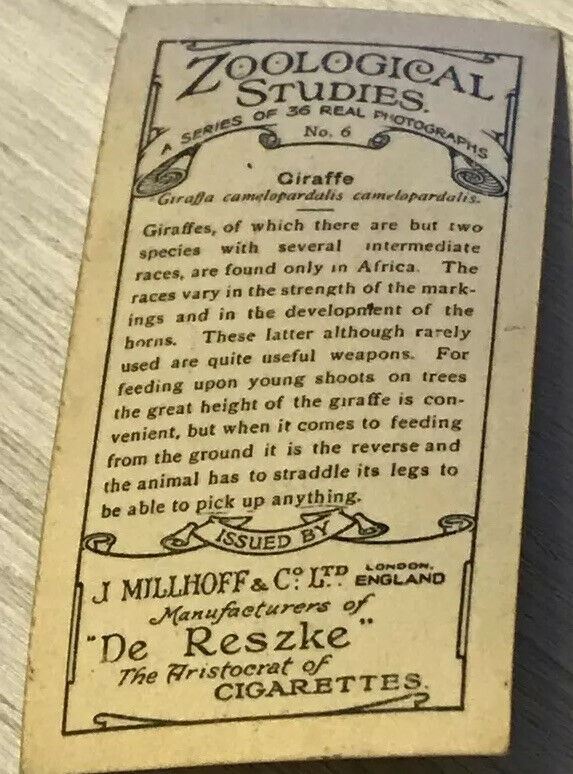 De Reszke Cigarette Card - Zoological Studies - No. 6 - Giraffe - Vintage Photo - 1920s - Zoo Pic