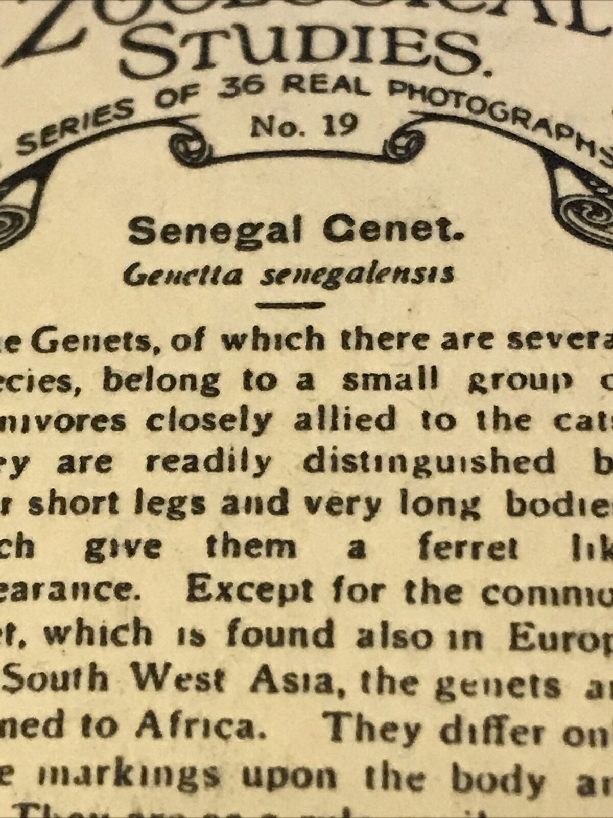 De Reszke Cigarette Card Zoological Studies No 19 Senegal Genet. Photograph