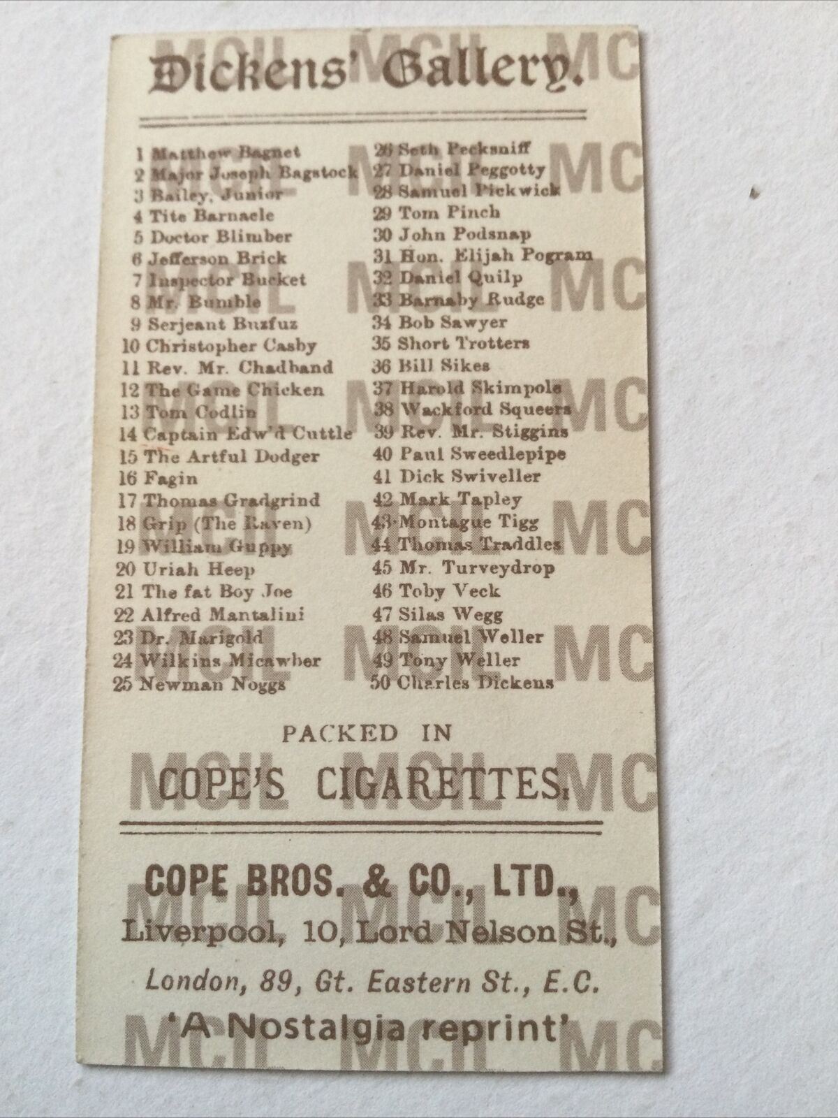 DOCTOR BLIMBER Dickens Gallery Cope Bros Cigarette Card #5 Nostalgia Reprint. Condition is "Used". Dispatched with Royal Mail 2nd Class Letter.