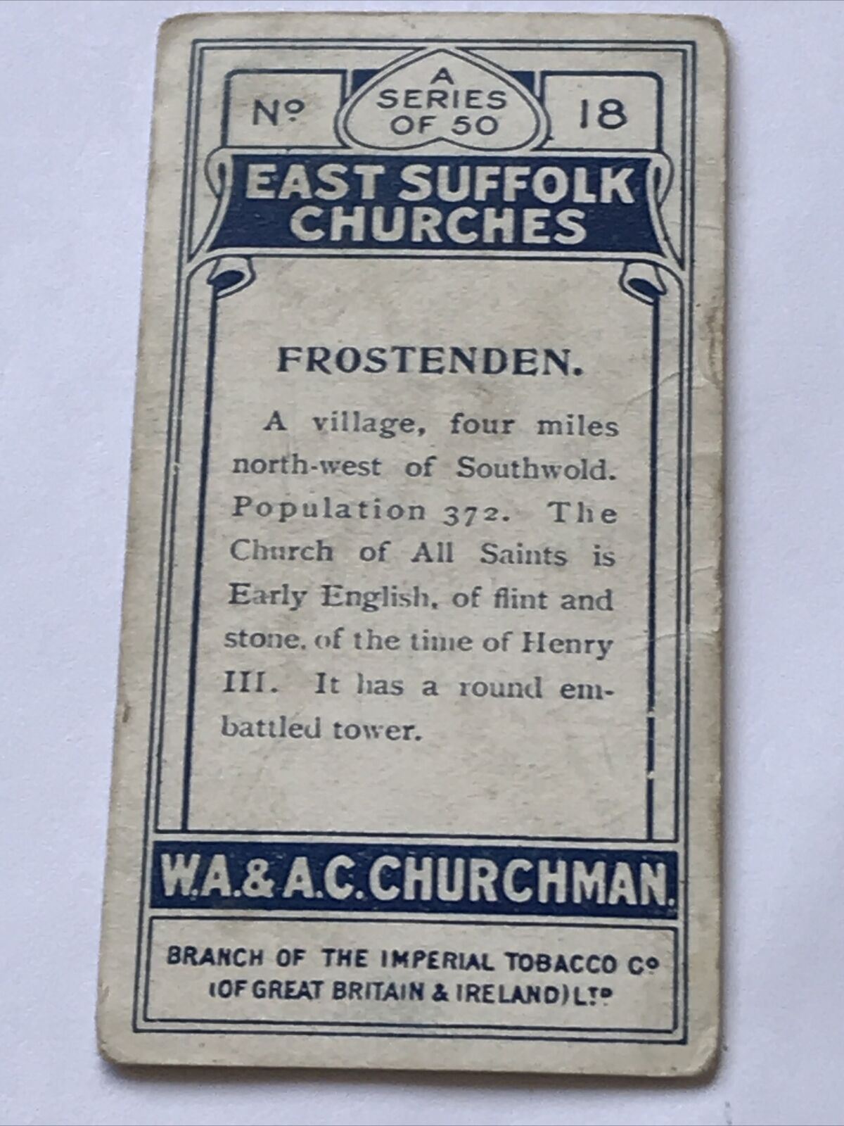 EAST SUFFOLK CHURCHES FROSTENDEN Churchman Cigarette Card #18 Church Of All Sain
