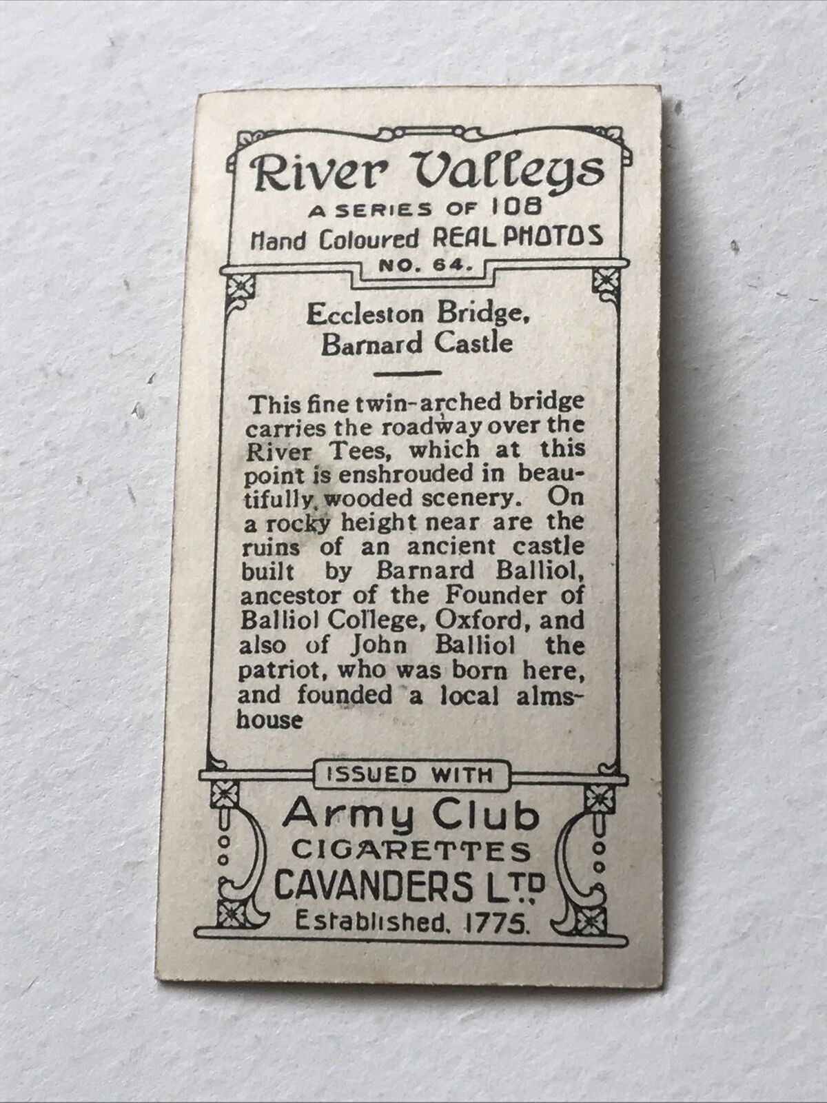 ECCLESTON BRIDGE BARNARD CASTLE Tinted Photo Cig Card Cavanders River Valleys