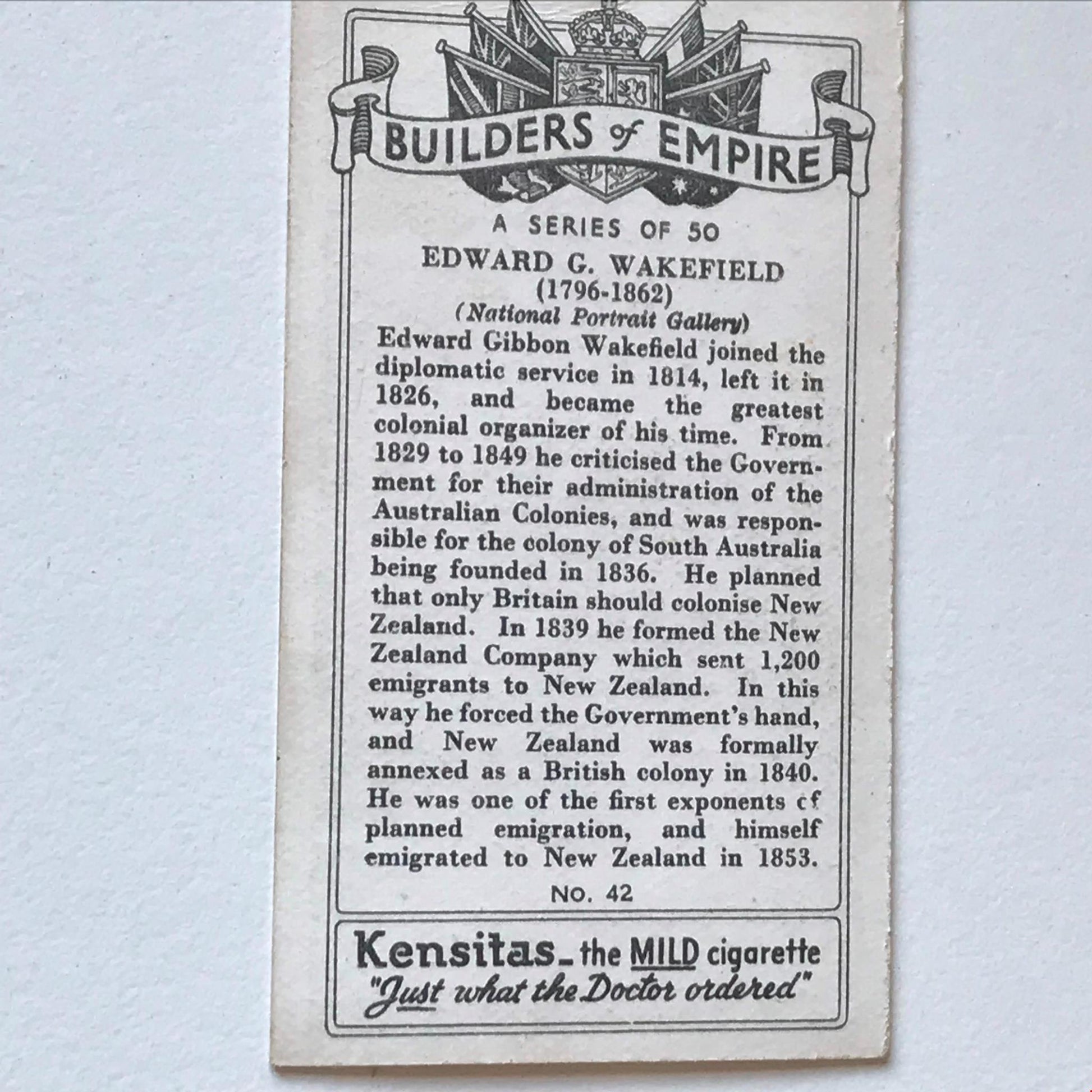 EDWARD G WAKEFIELD Kensitas Cigarette Card Builders of Empire no. 42 New Zealand