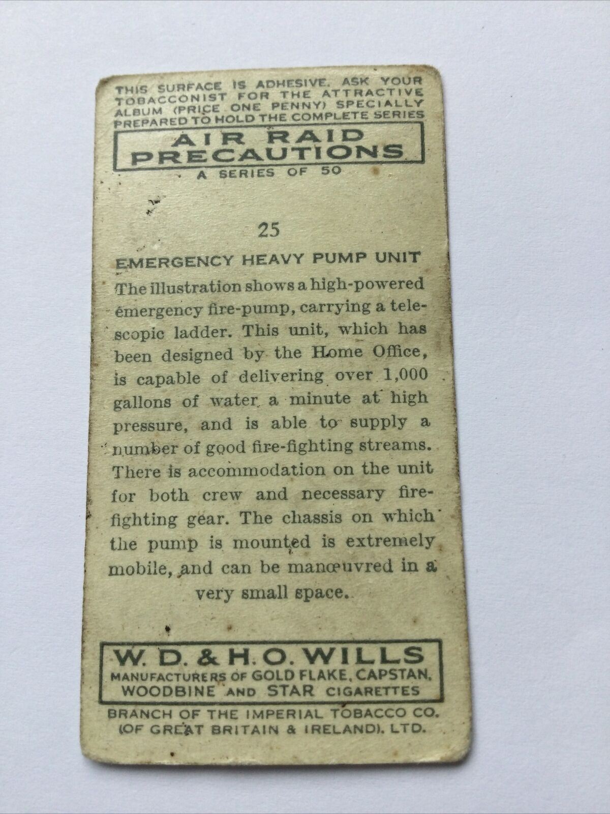 Emergency Heavy Pump Unit WILLS CIGARETTE CARD Air Raid Precautions #25
