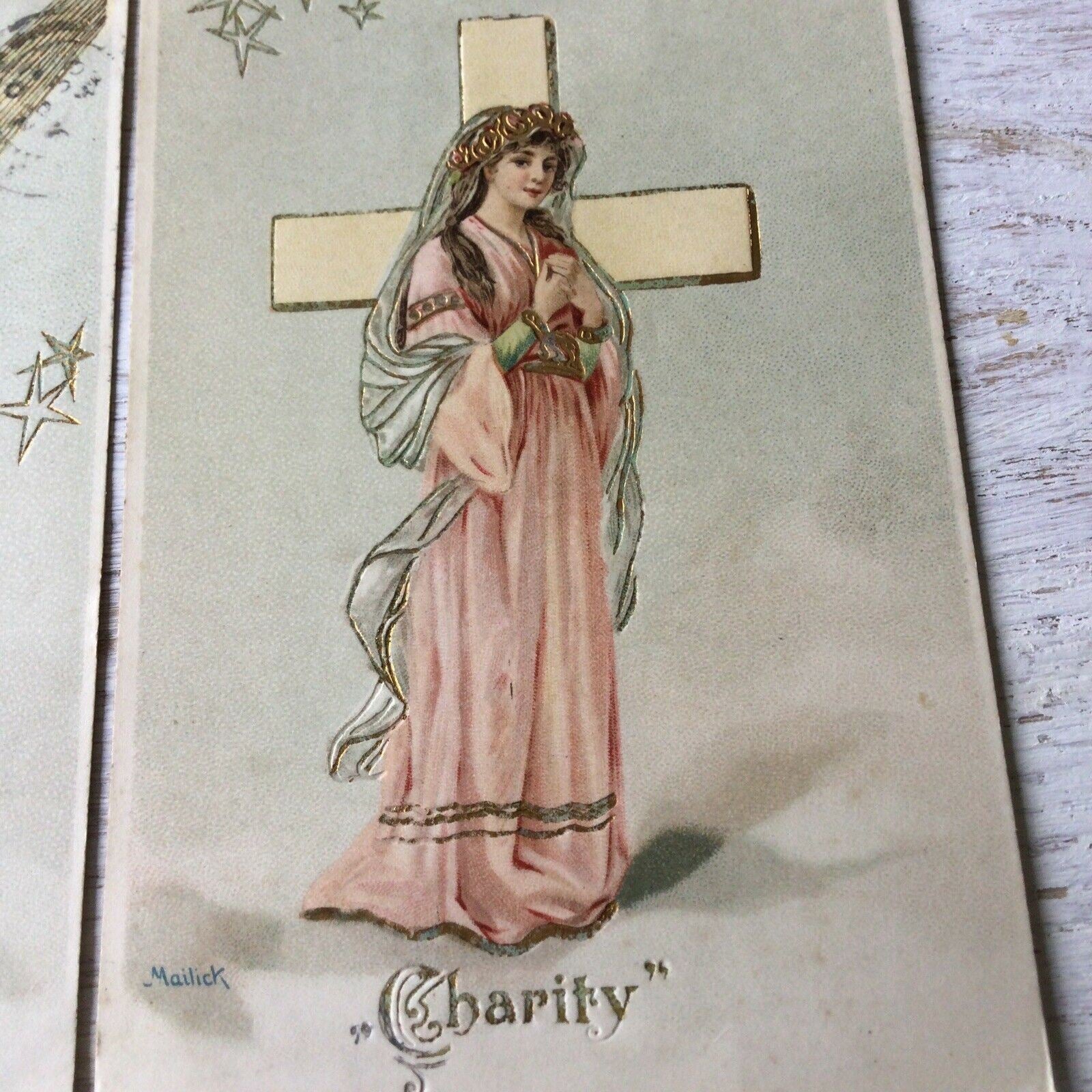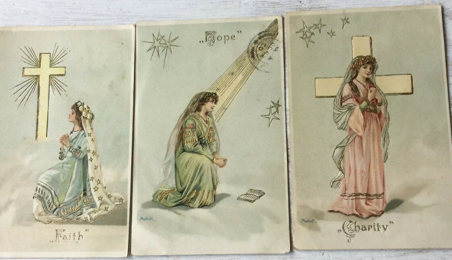 Faith Hope Charity Antique Vintage Postcards Pastel Colours Pretty 1905 Edwardia