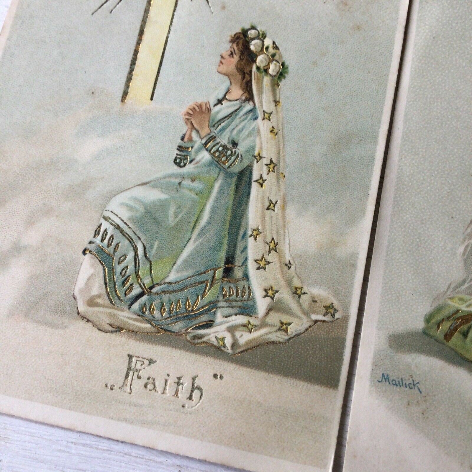 Really beautiful set of 3 antique postcards, depicting faith hope and charity.