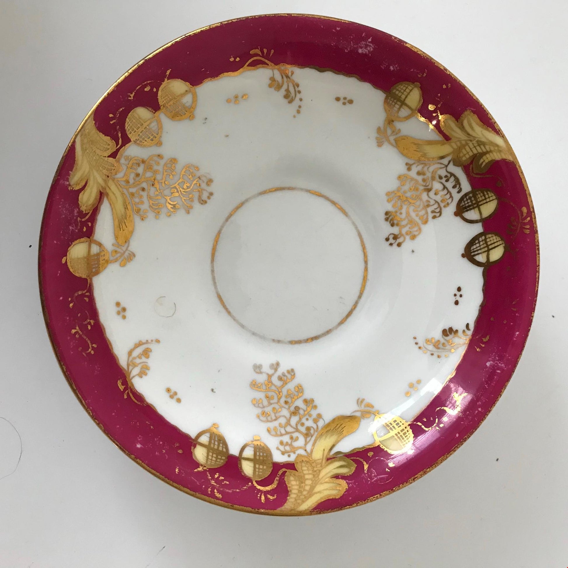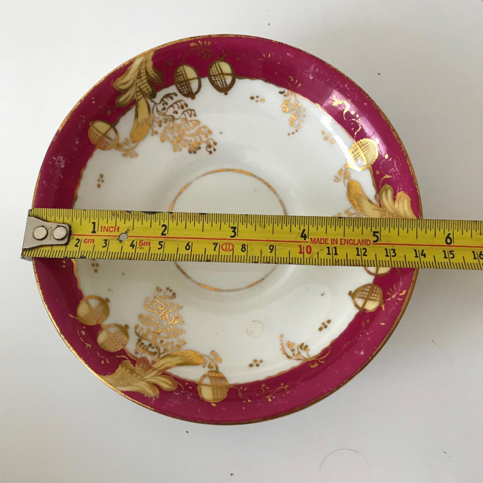 Festive bone china spare saucer, soap dish, Christmas deep pink & gold c.1920s
