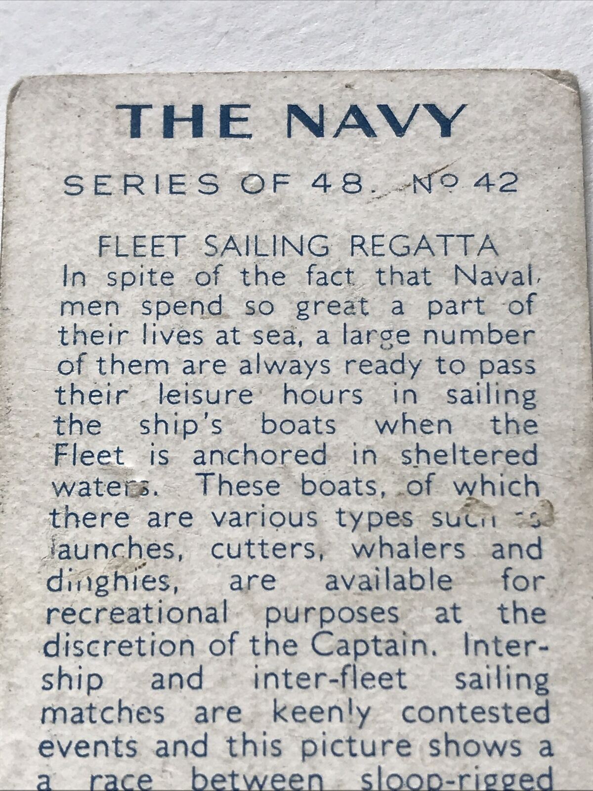 FLEET SAILING REGATTA Park Drive Gallaher Cigarette Card The Navy No 42 1937