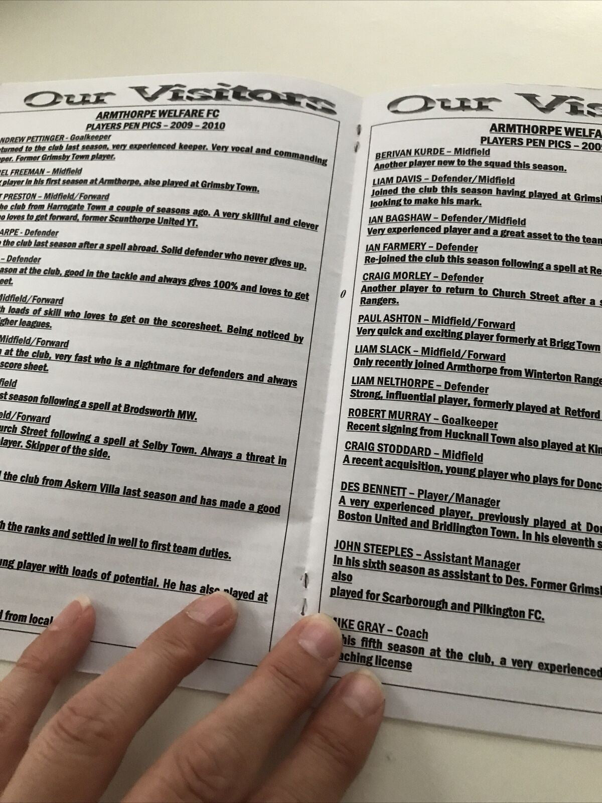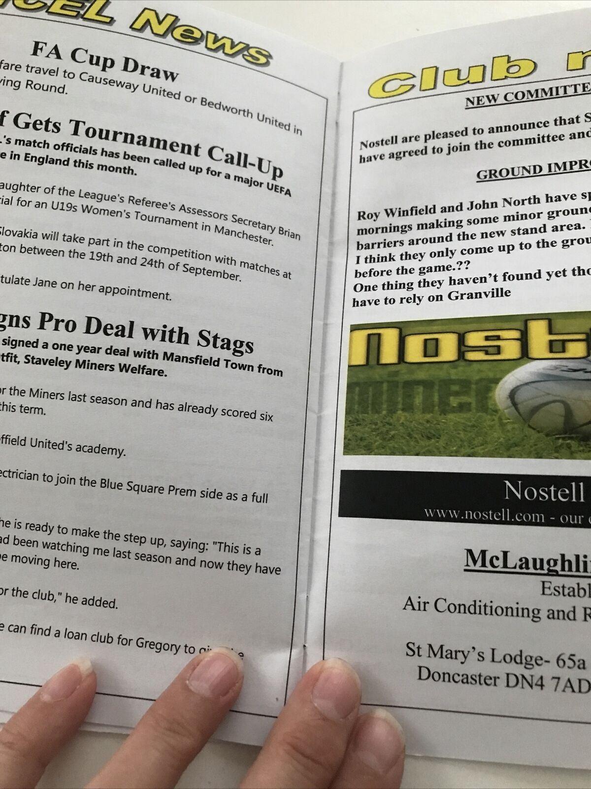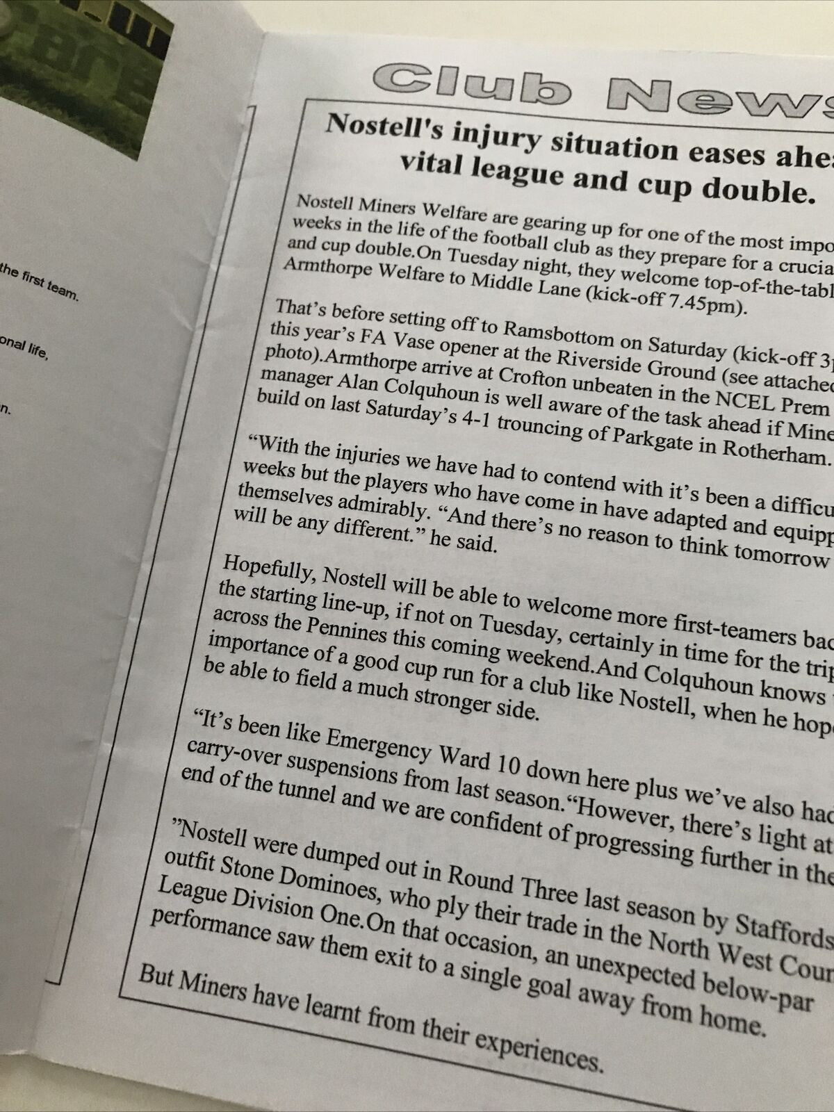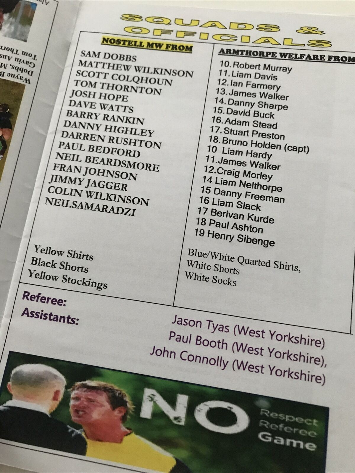 Football Programme NOSTELL MINERS WELFARE V ARMTHORPE WELFARE SEP 2009
