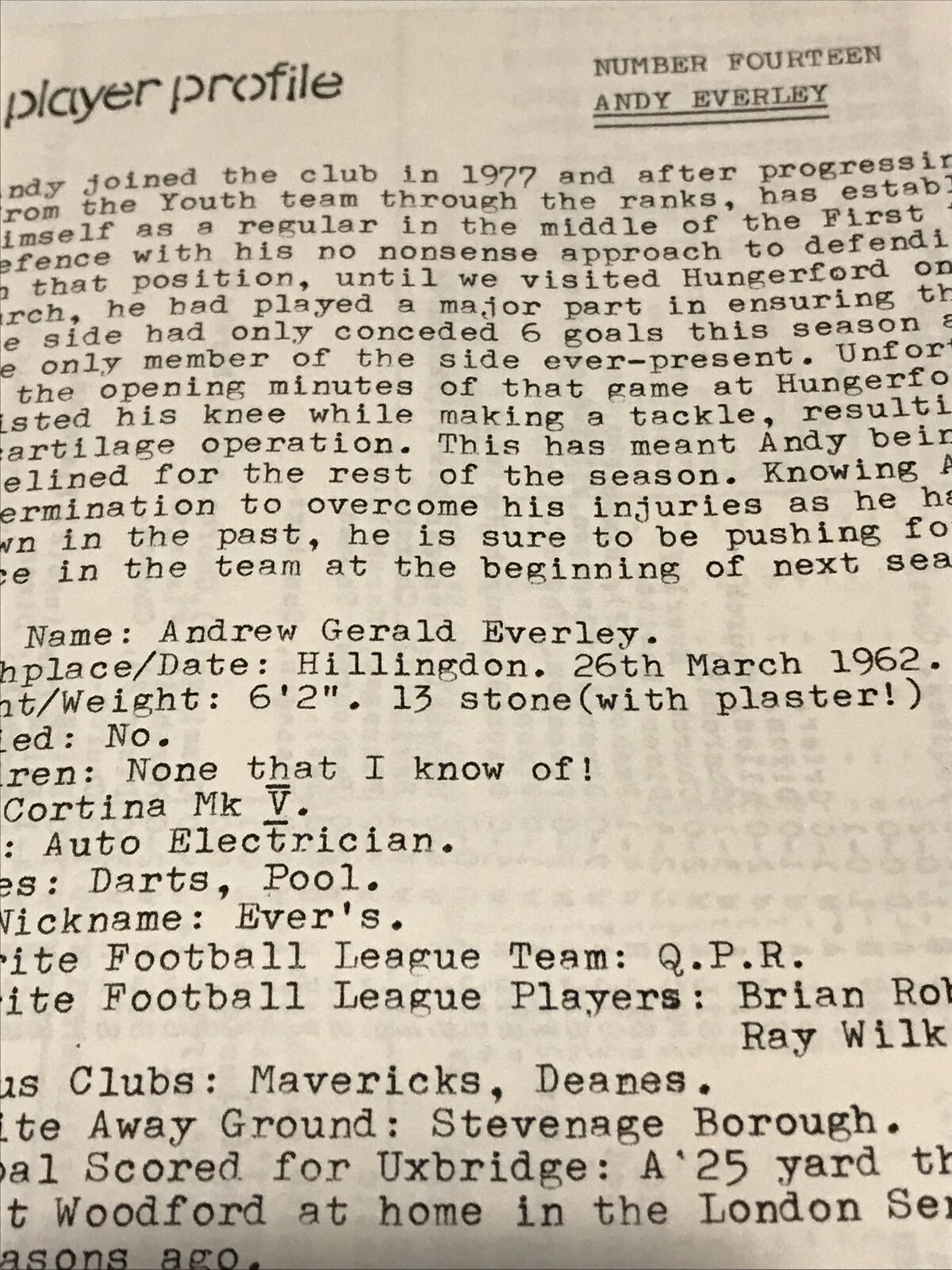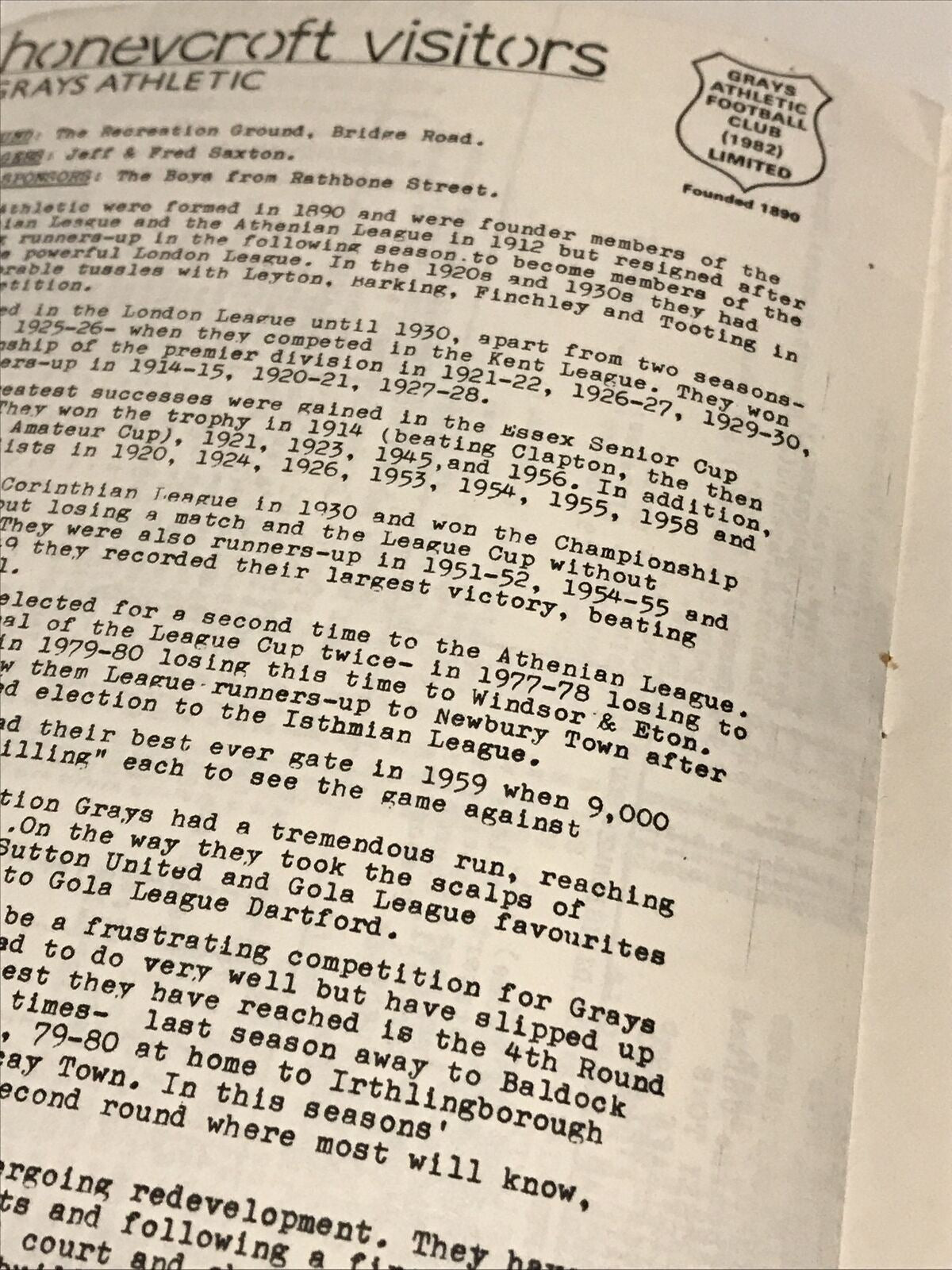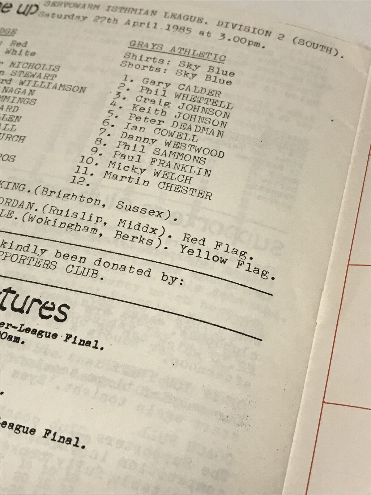 Football Programme Vintage 80s UXBRIDGE V GRAYS ATHLETIC April 1985 JON FLANAGAN