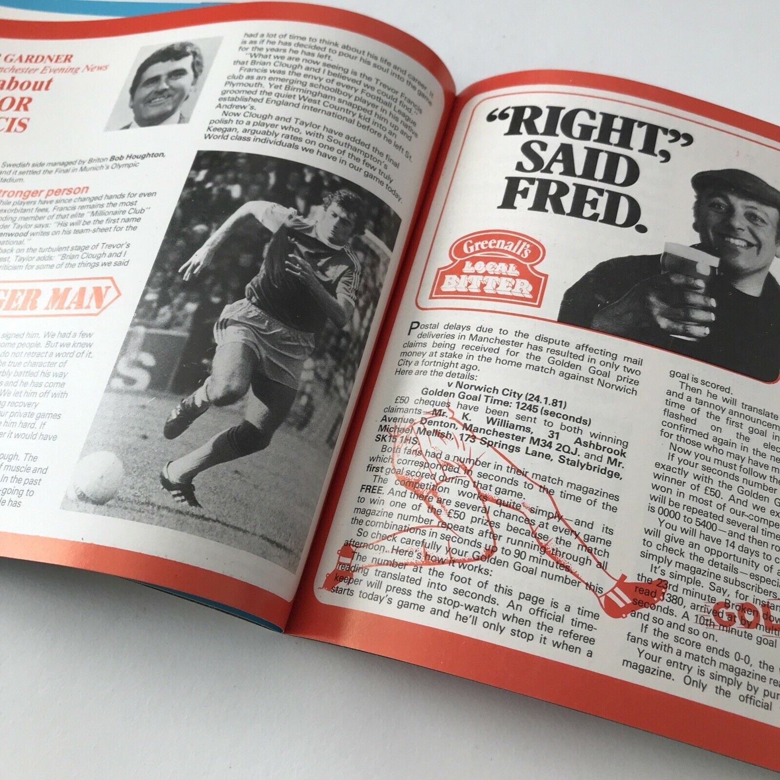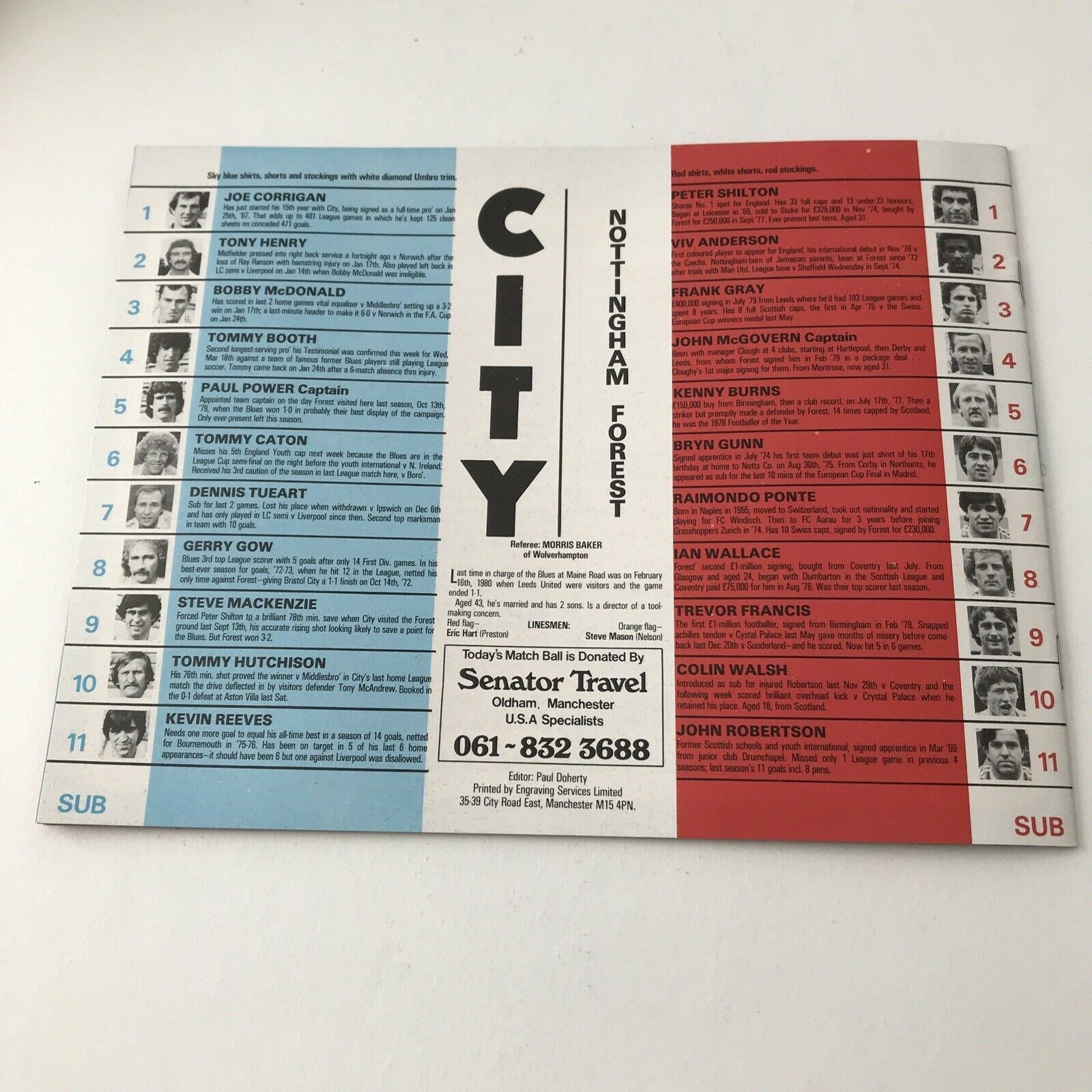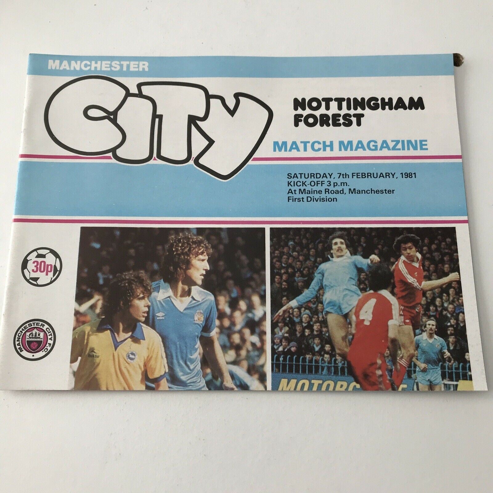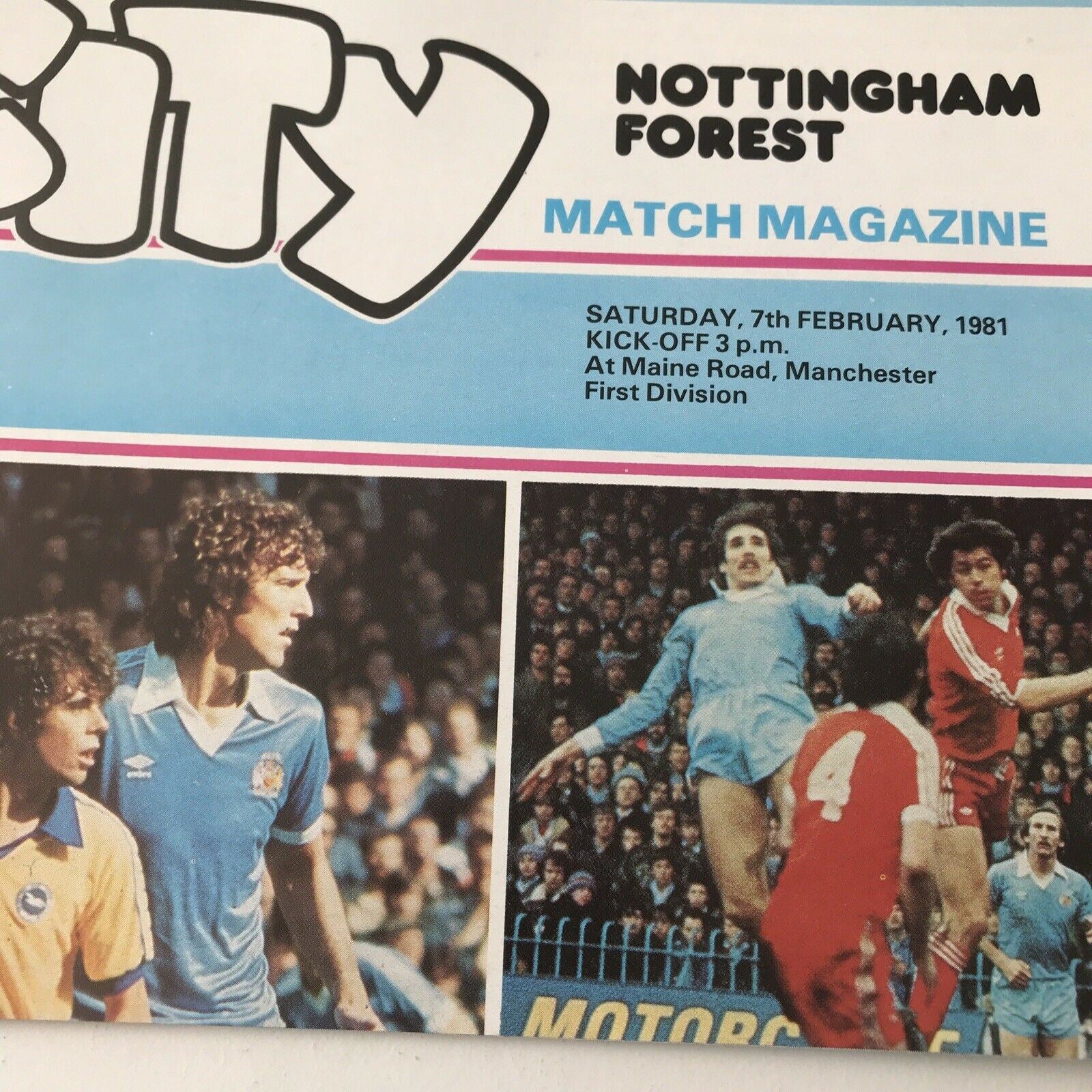 Football Programme Vintage Man City v Nottingham Forest 1981 7th Feb 80s 1st Div