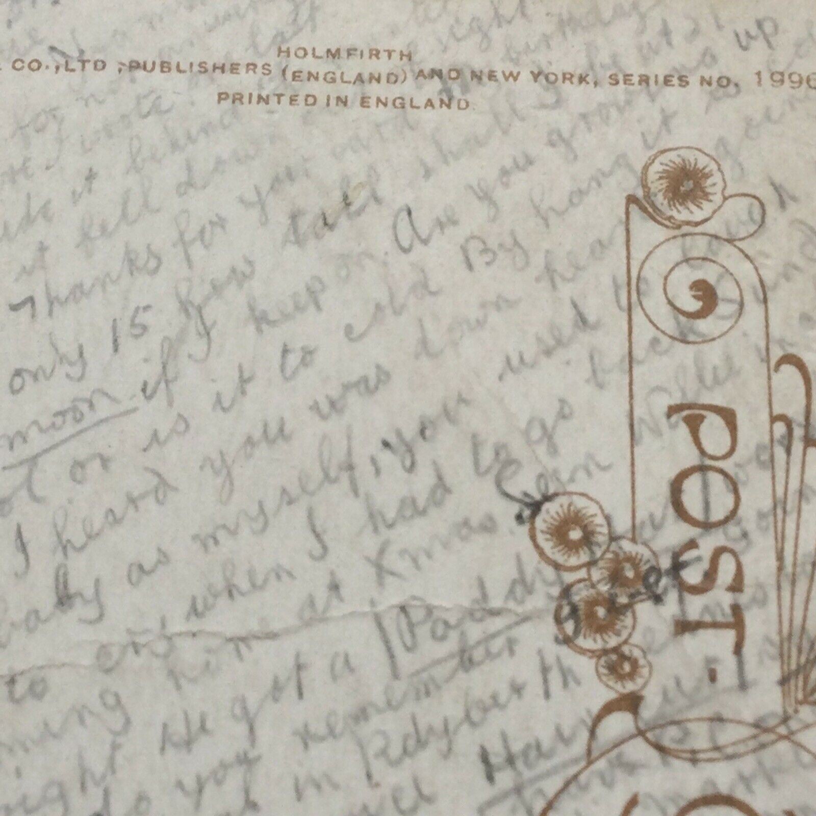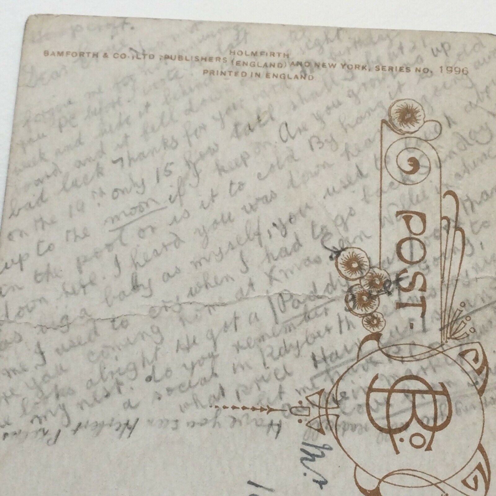 Funny Antique Postcard 1912. Moving Note On It From 15 Year Old Social History
