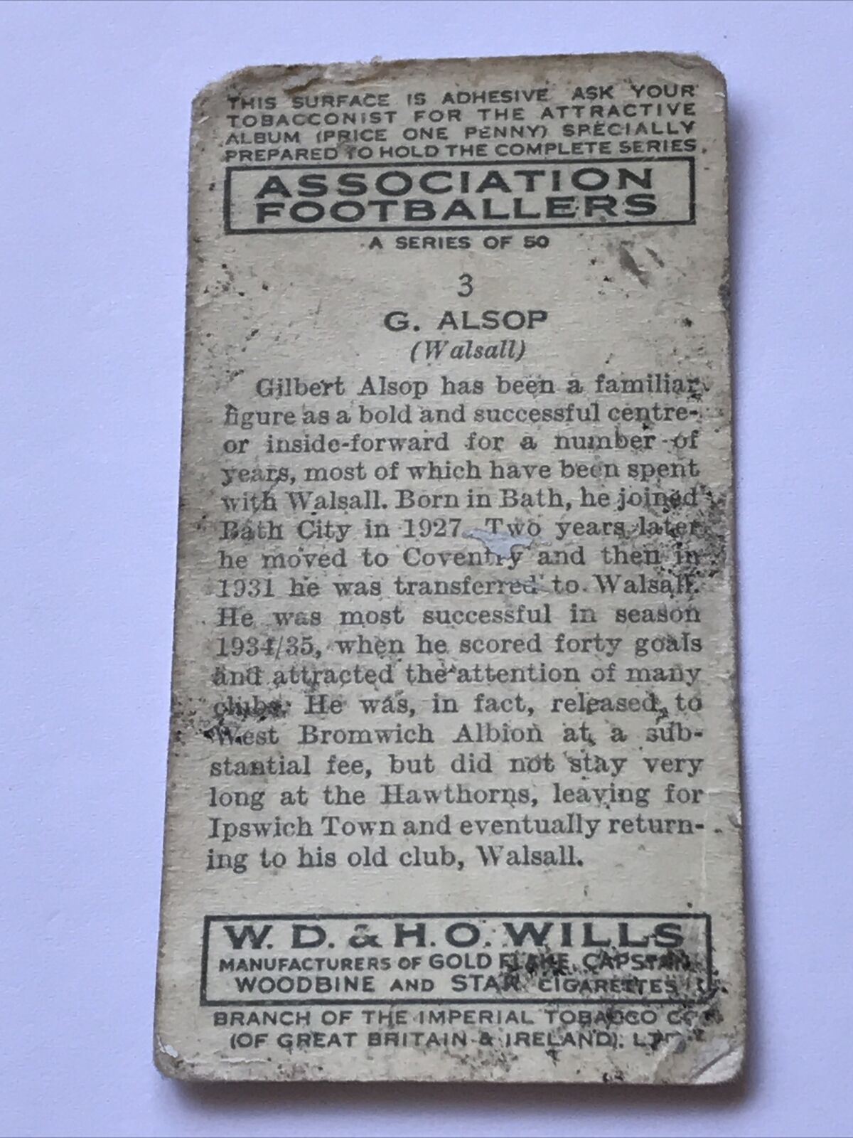 G Alsop WILLS CIGARETTE CARD Association Footballers #3 Walsall