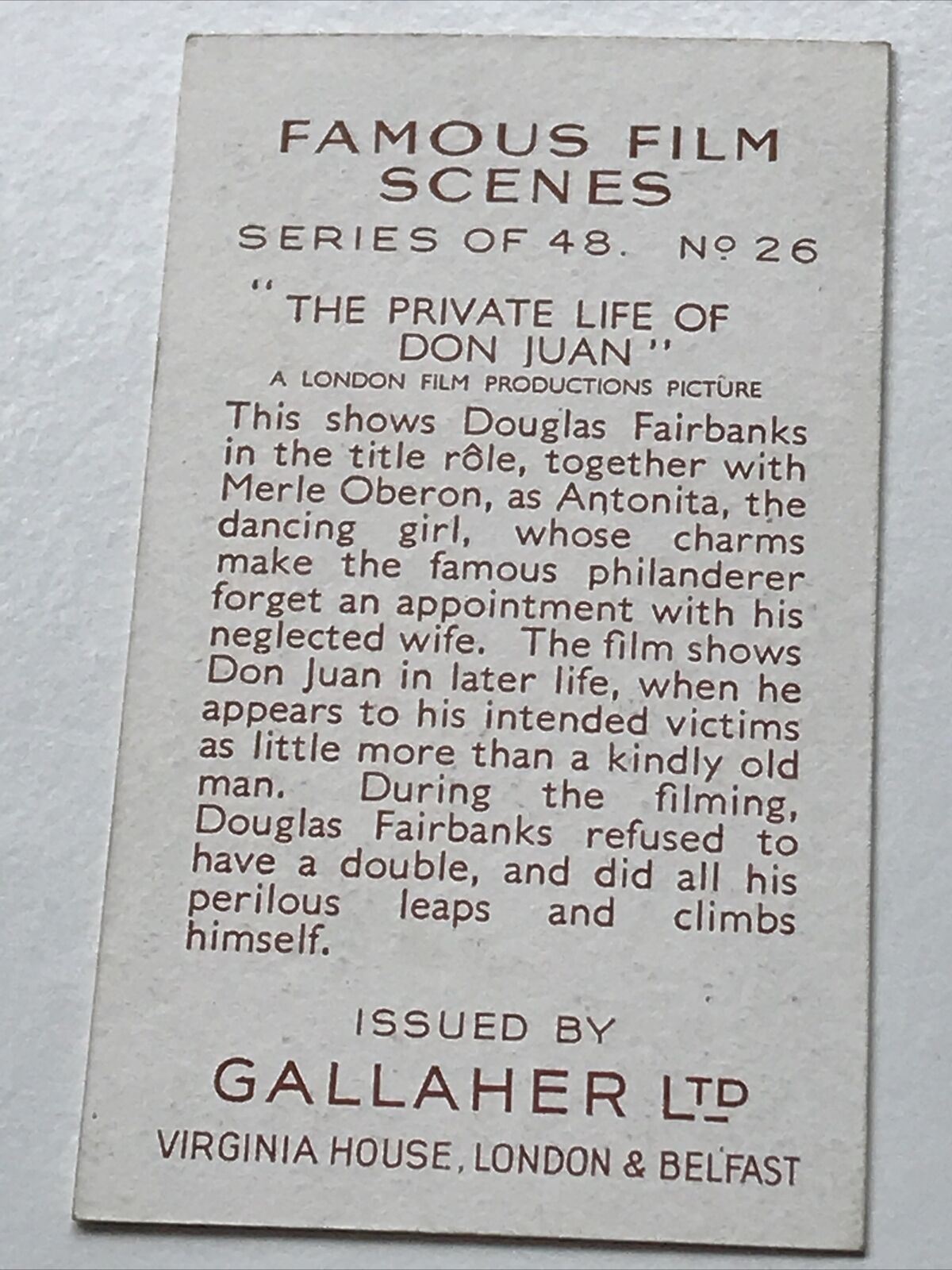 Gallaher Cigarette Card Famous Film Scenes #26 THE PRIVATE LIFE OF DON JUAN