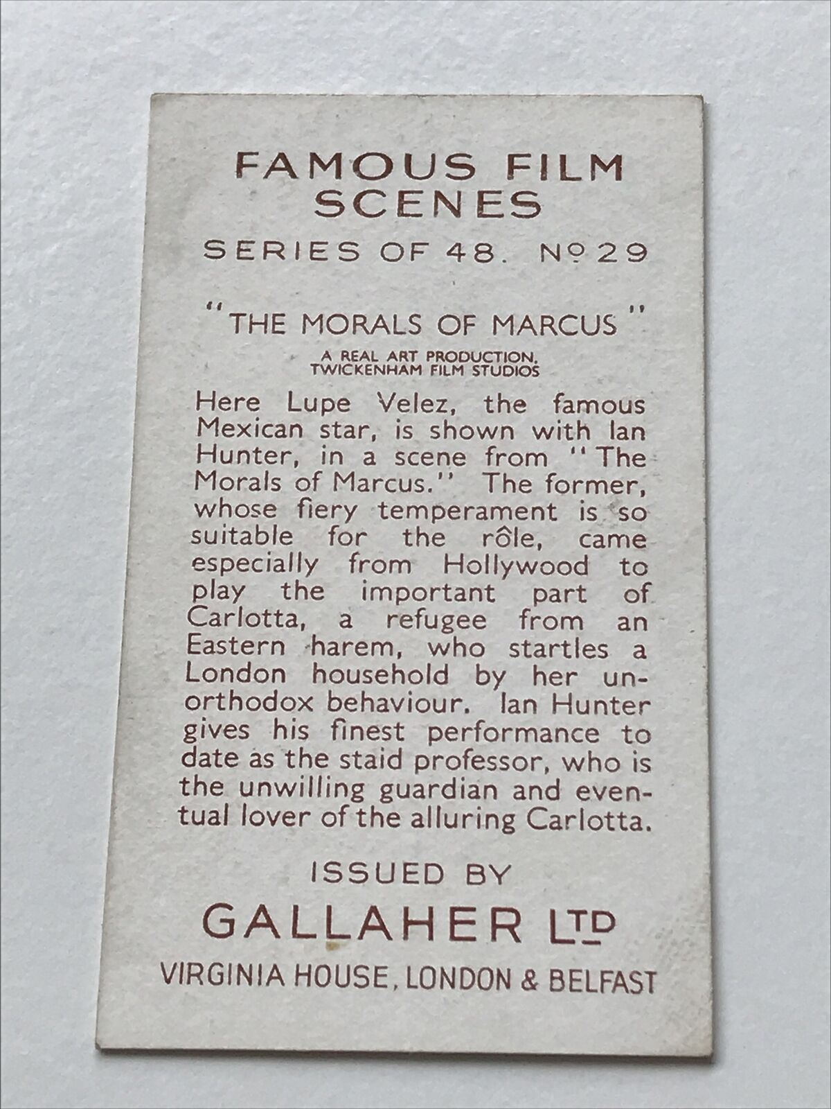 Gallaher Cigarette Card Famous Film Scenes #29 THE MORALS OF MARCUS IAN HUNTER
