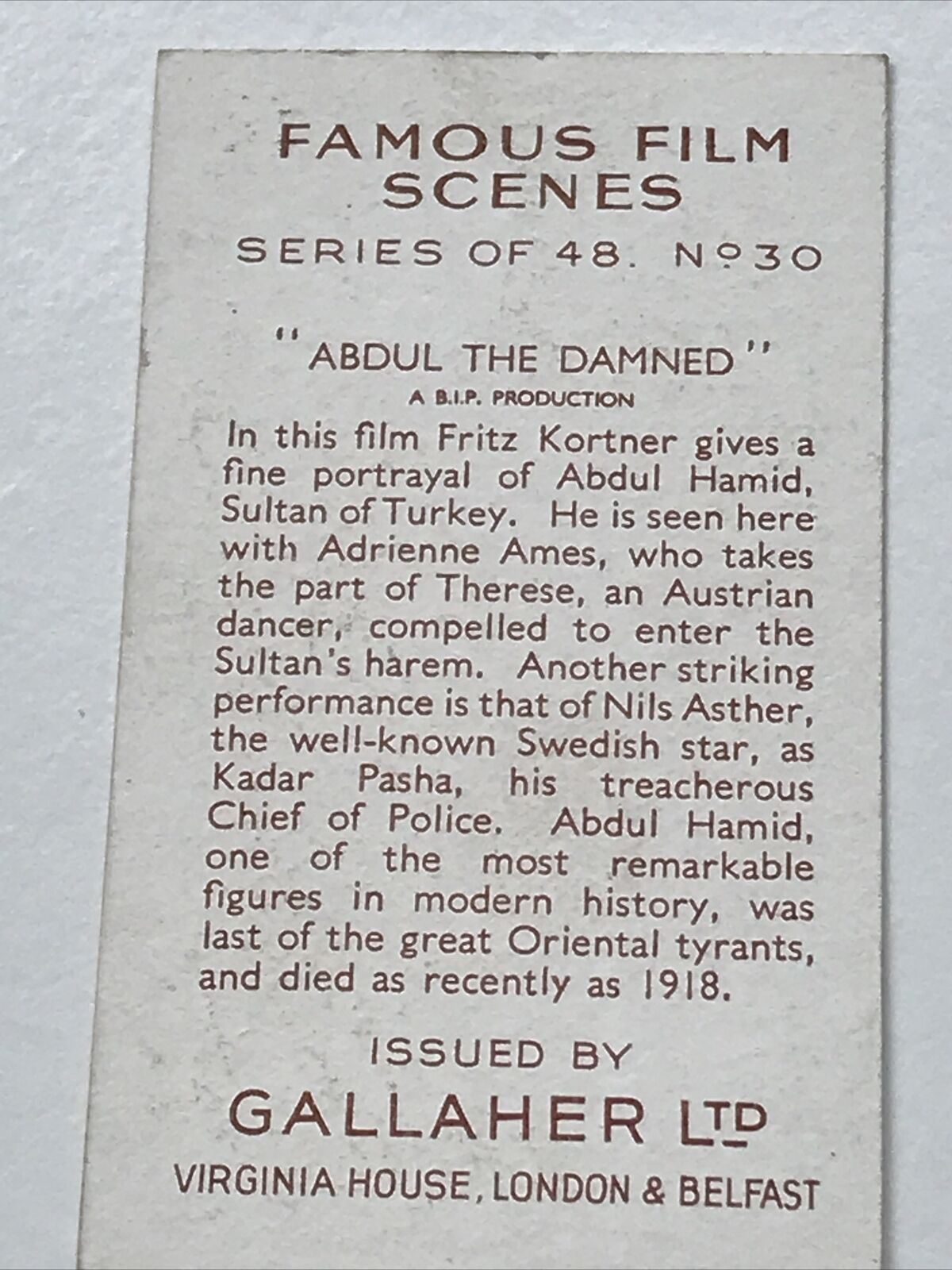 Gallaher Cigarette Card Famous Film Scenes #30 ABDUL THE DAMNED FRITZ KORTNER