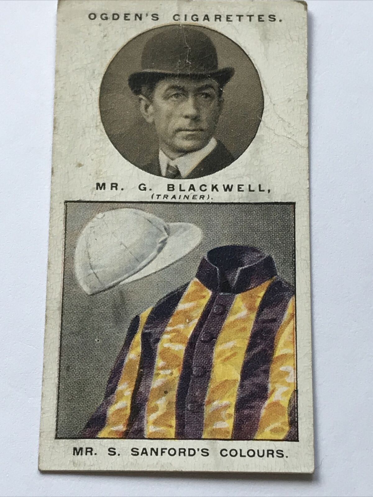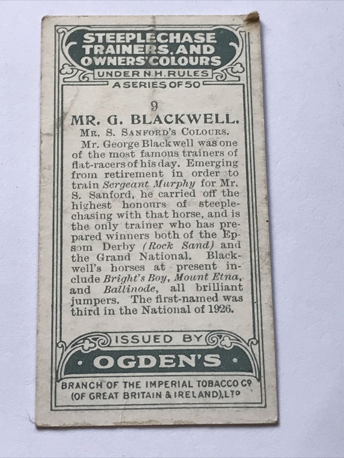 Ogdens Cigarette Card 1927 - Steeplechase Trainers & Owners Colours - No. 9 - Mr G. Blackwell - Mr S. Sanford's Colours
