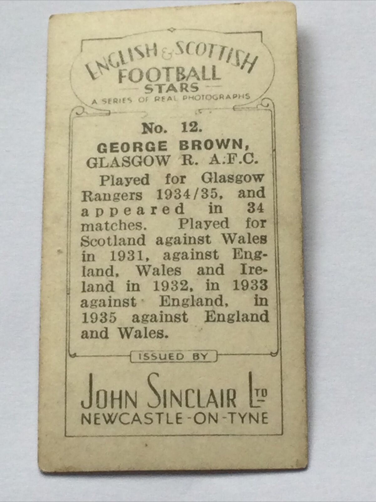 GEORGE BROWN Photo- John Sinclair Cigarette Card English & Scottish Football #12