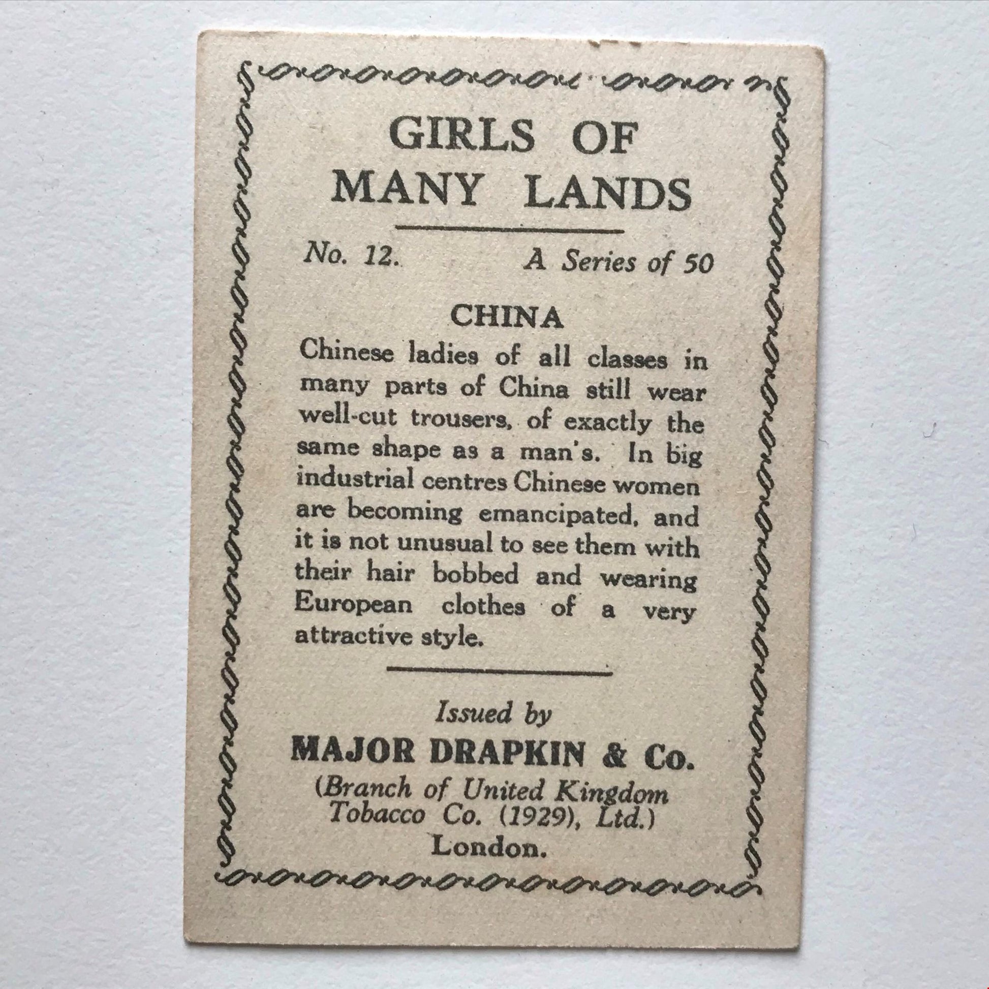 Girls of Many Lands CHINA Beautiful Art Deco 1926 Cigarette Card Major Drapkin
