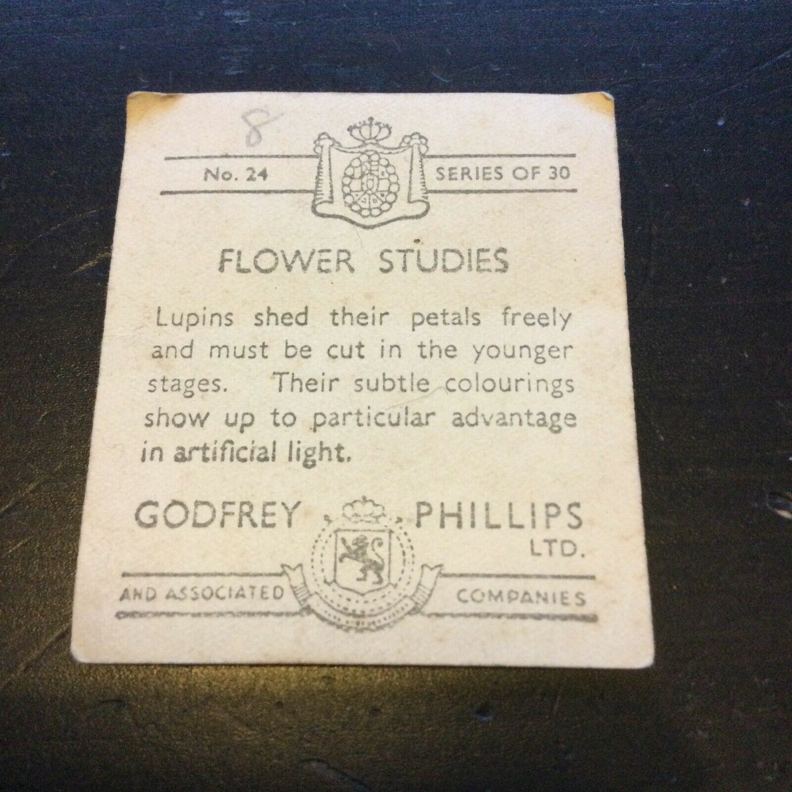 Godfrey Phillips Cigarette Card Flower Studies Lupins no.24. Condition is "Used". Dispatched with Royal Mail 1st Class Letter.