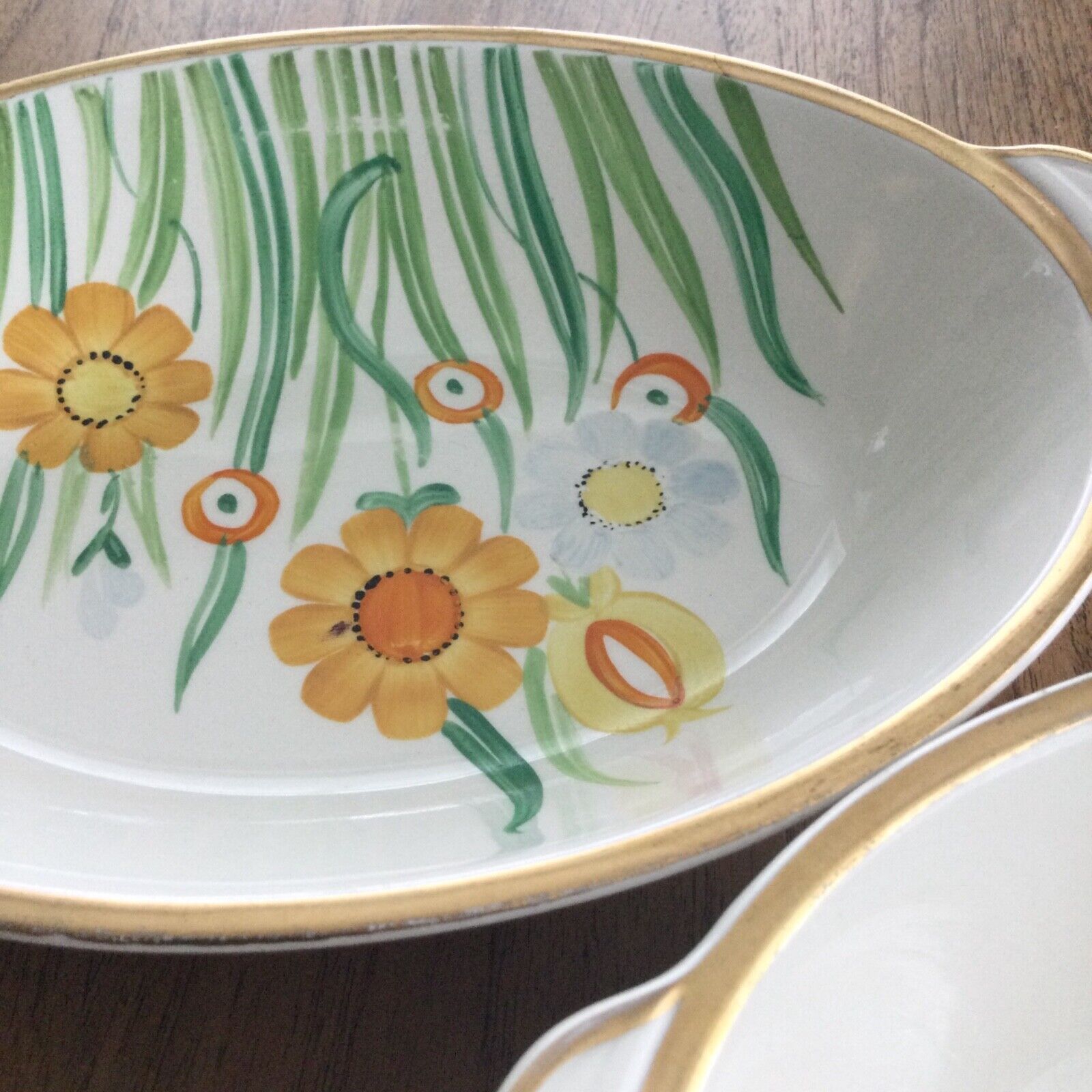 2 x handled veg serving dishes, decorated in the hand painted ‘Summertime’ pattern.