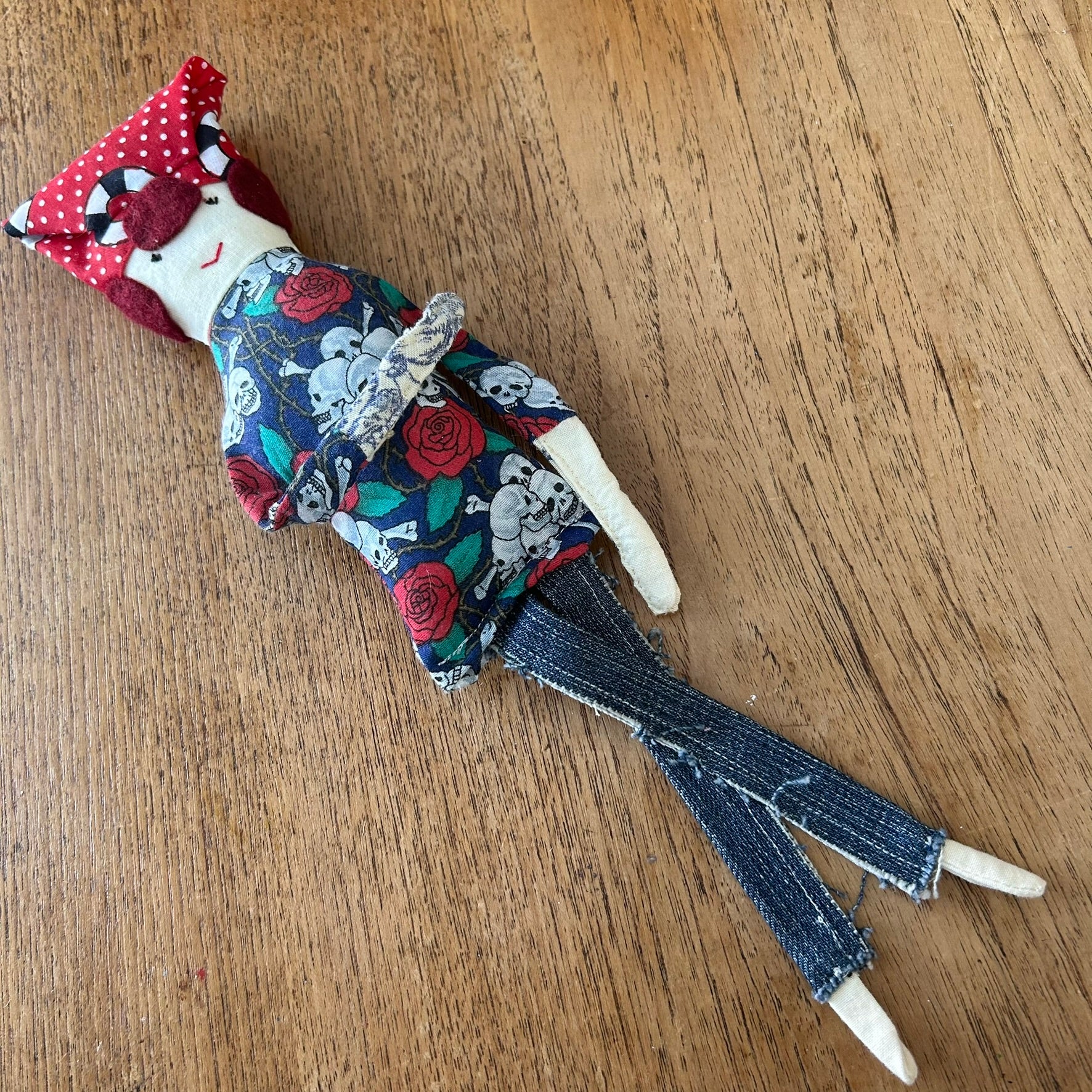 Hand Made Rag Doll 1950s Tattooed Lady Rockabilly Denim Retro Alternative . Condition is "New". Dispatched with Royal Mail.