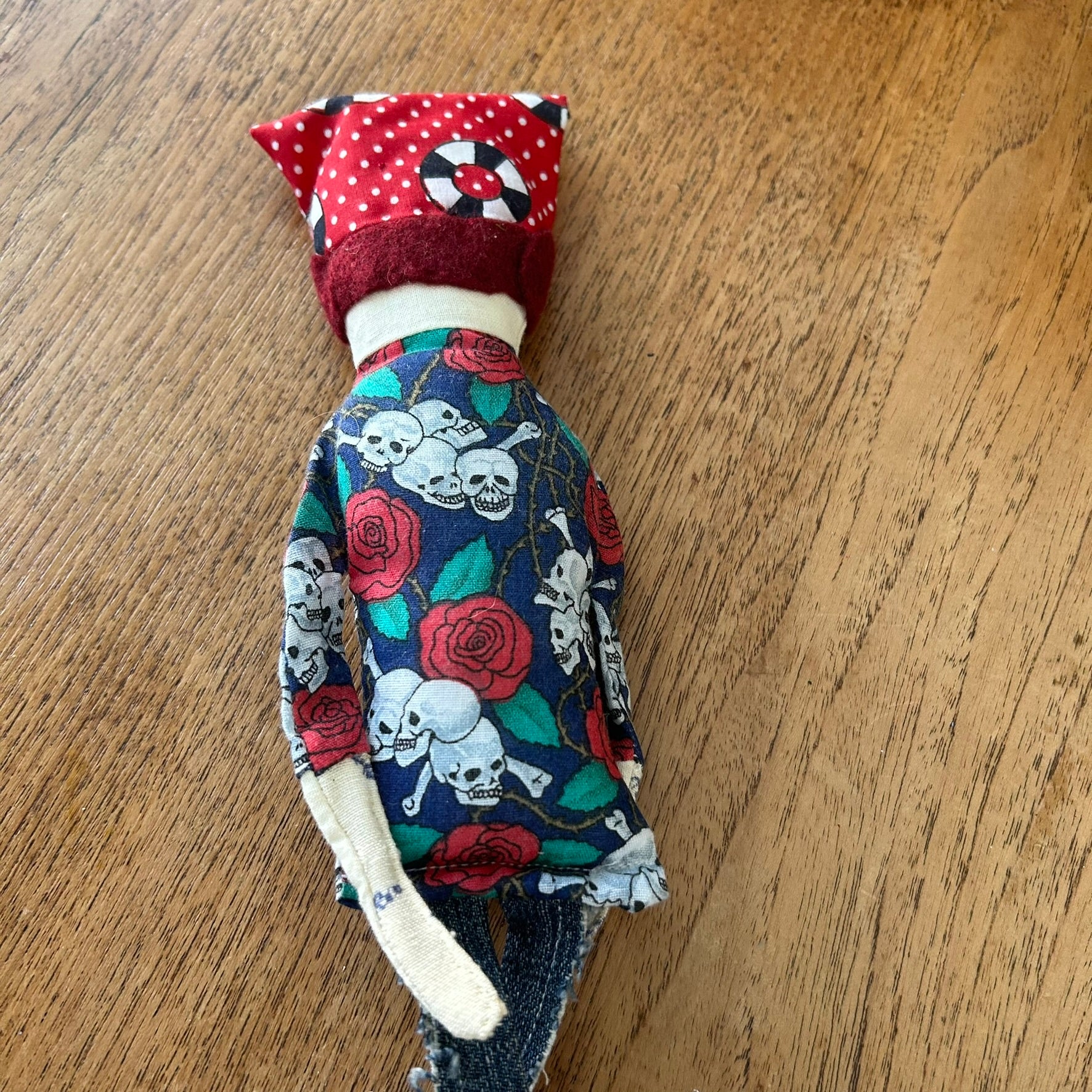 Hand Made Rag Doll. 1950s Tattooed Lady. Rockabilly Denim Retro Alternative Kitsch. 32 cm.
