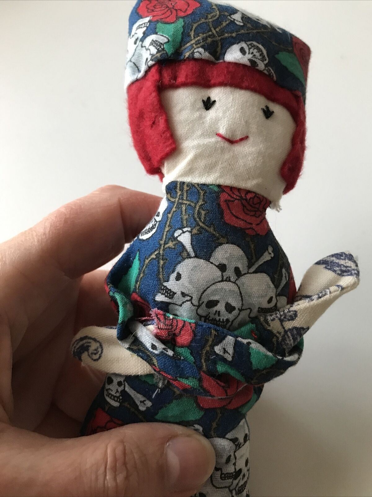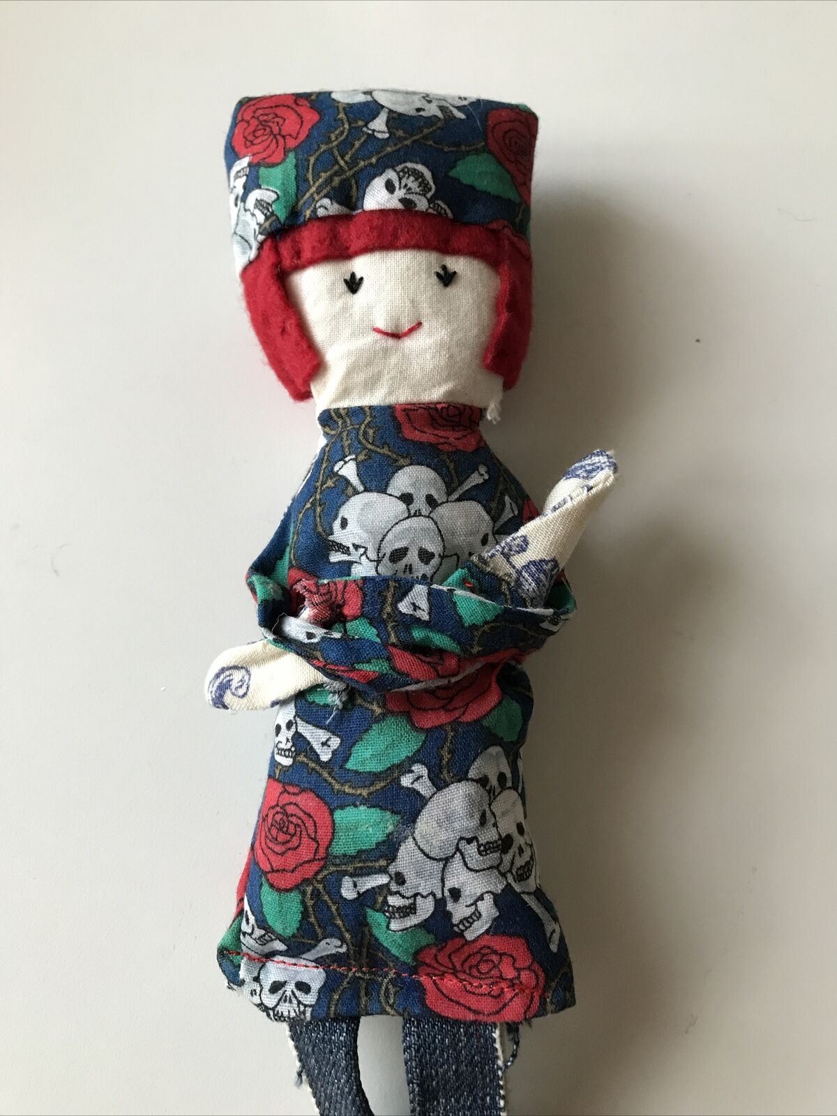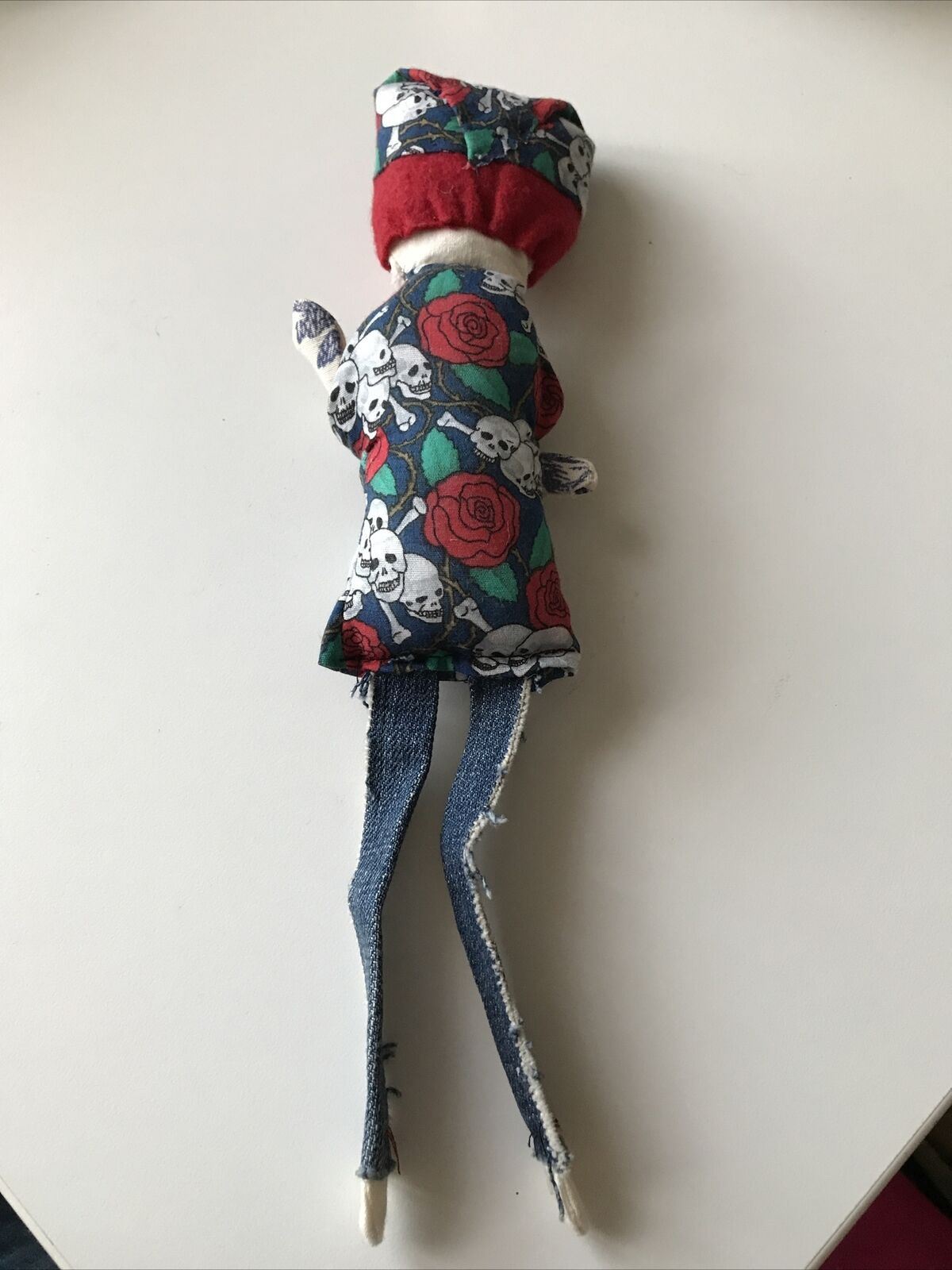 Hand Made Rag Doll 1950s Tattooed Lady Rockabilly Denim Retro Alternative Skulls. Condition is "New". Dispatched with Royal Mail.