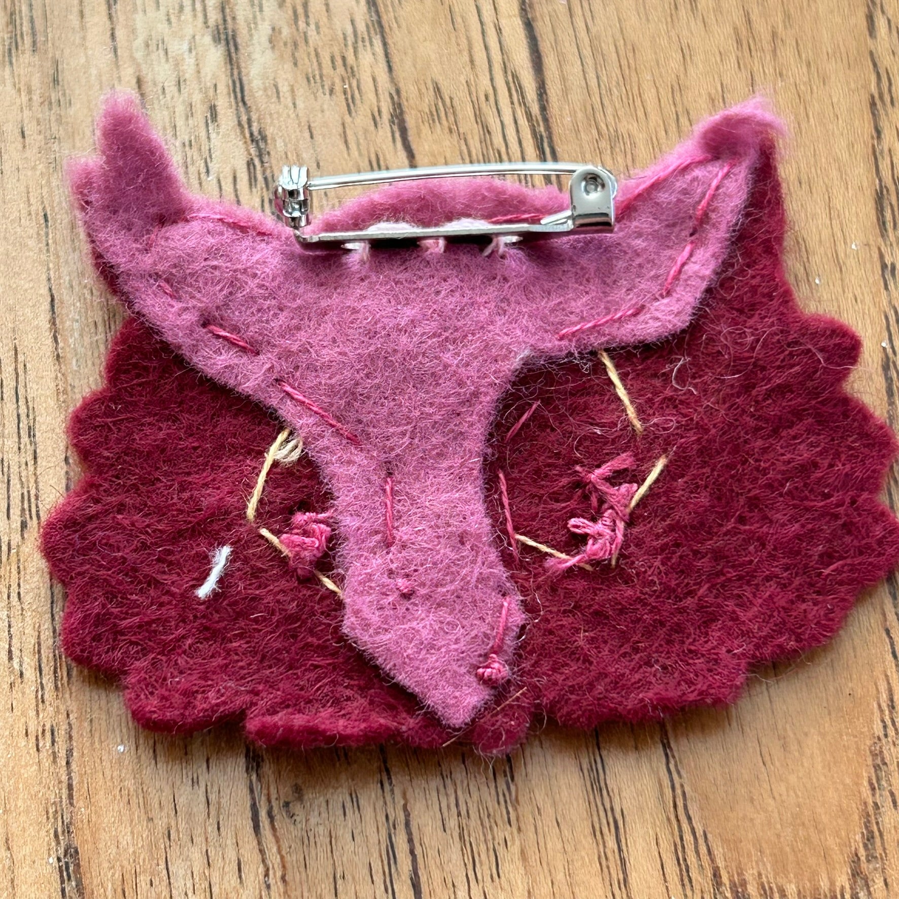 Handmade Felt Brooch / Badge. Owl design. Retro Vintage Style. Made in UK. Woodland animal theme. Burgundy