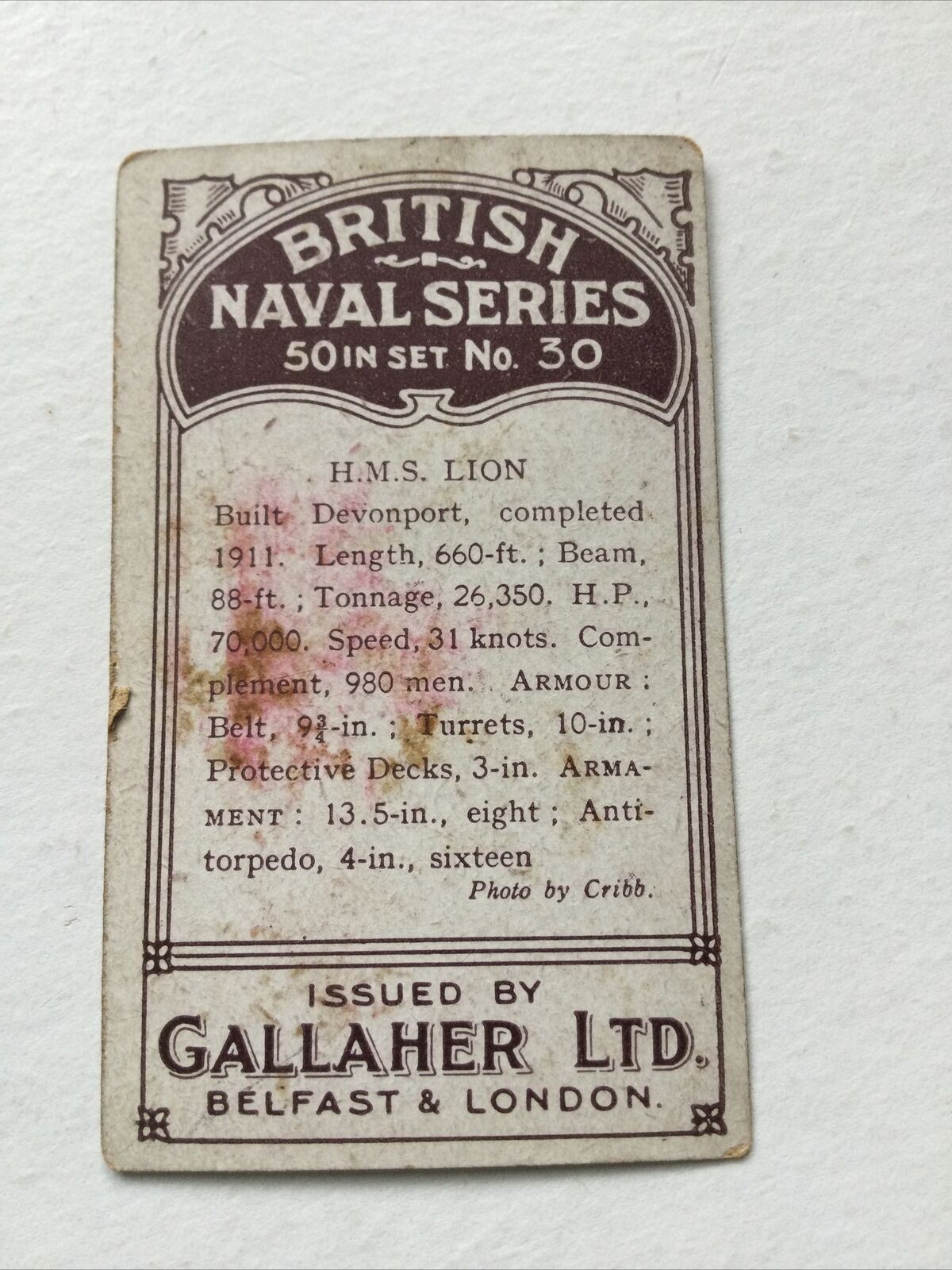 HMS LION AFTER RECONSTRUCTION Cigarette Card Gallaher British Naval Series #30