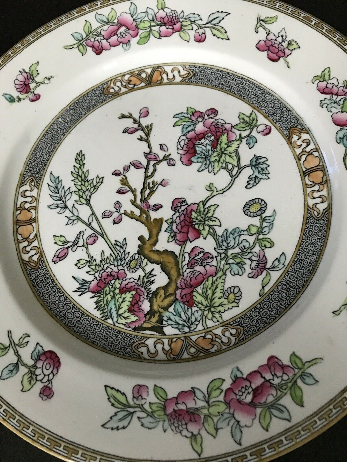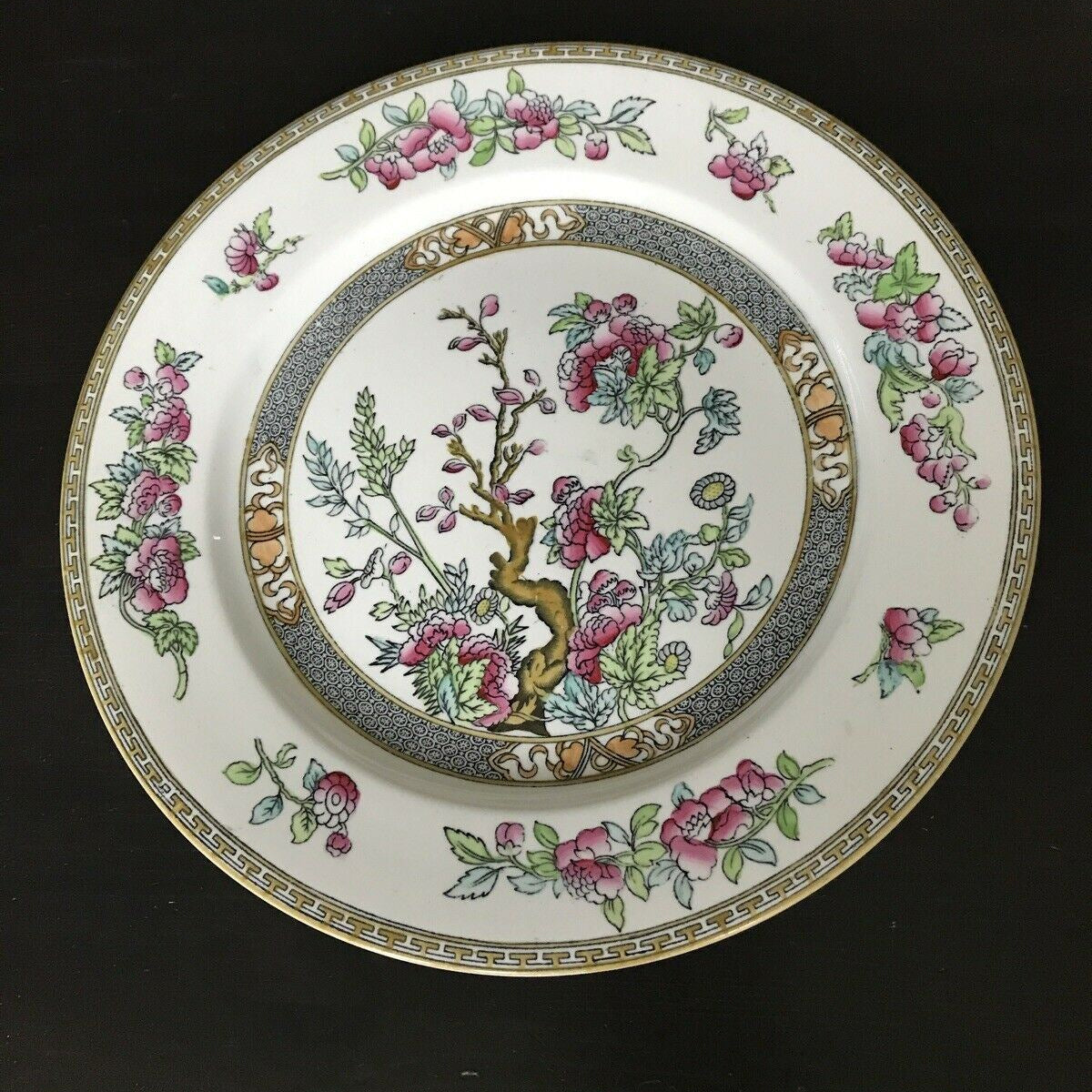 Wedgwood & Co Unicorn Indian Tree 10" Dinner Plate. Vintage. Pink Green. Floral. Pretty