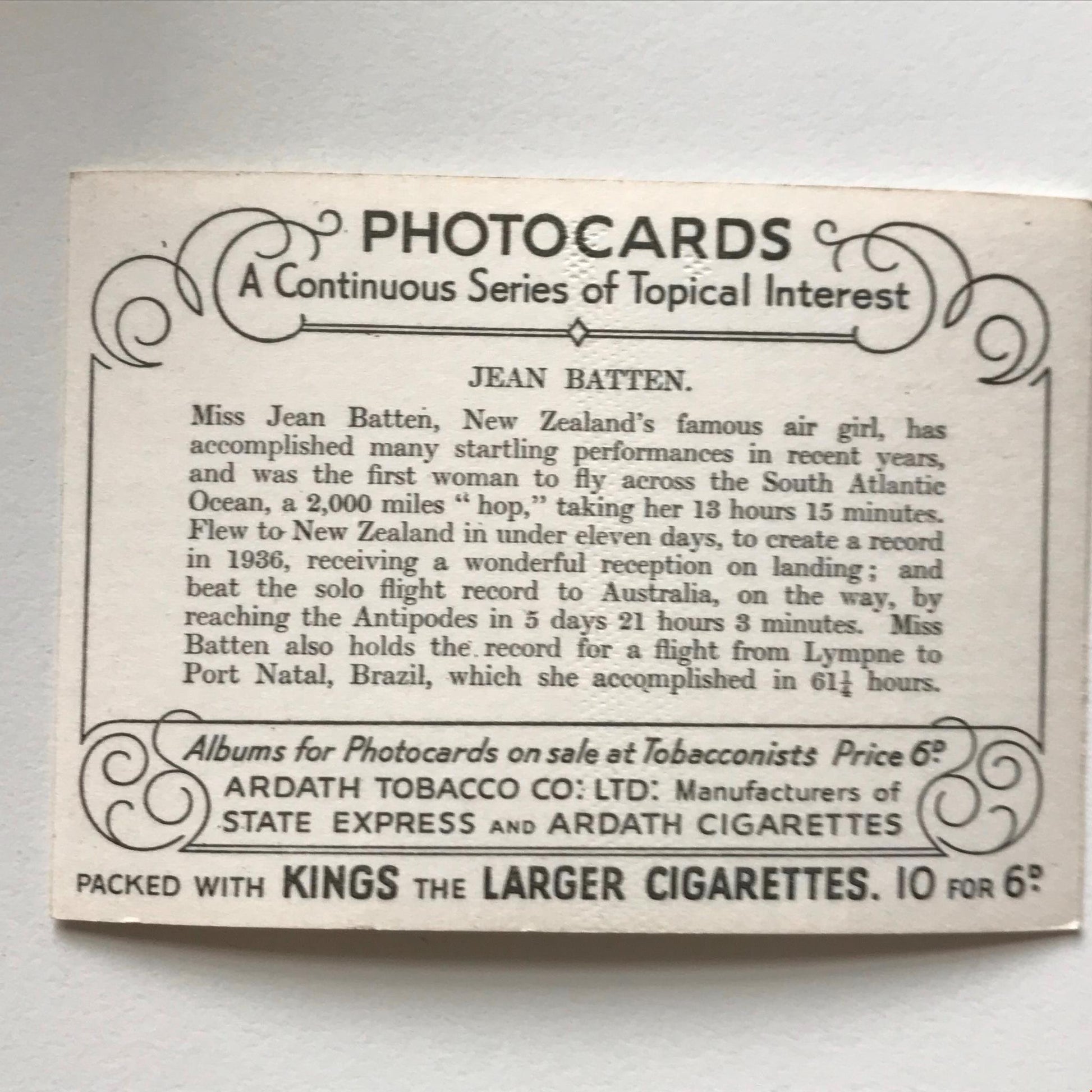 JEAN BATTEN aviator Photocard Ardath Kings Tobacco card Topical Interest 1937