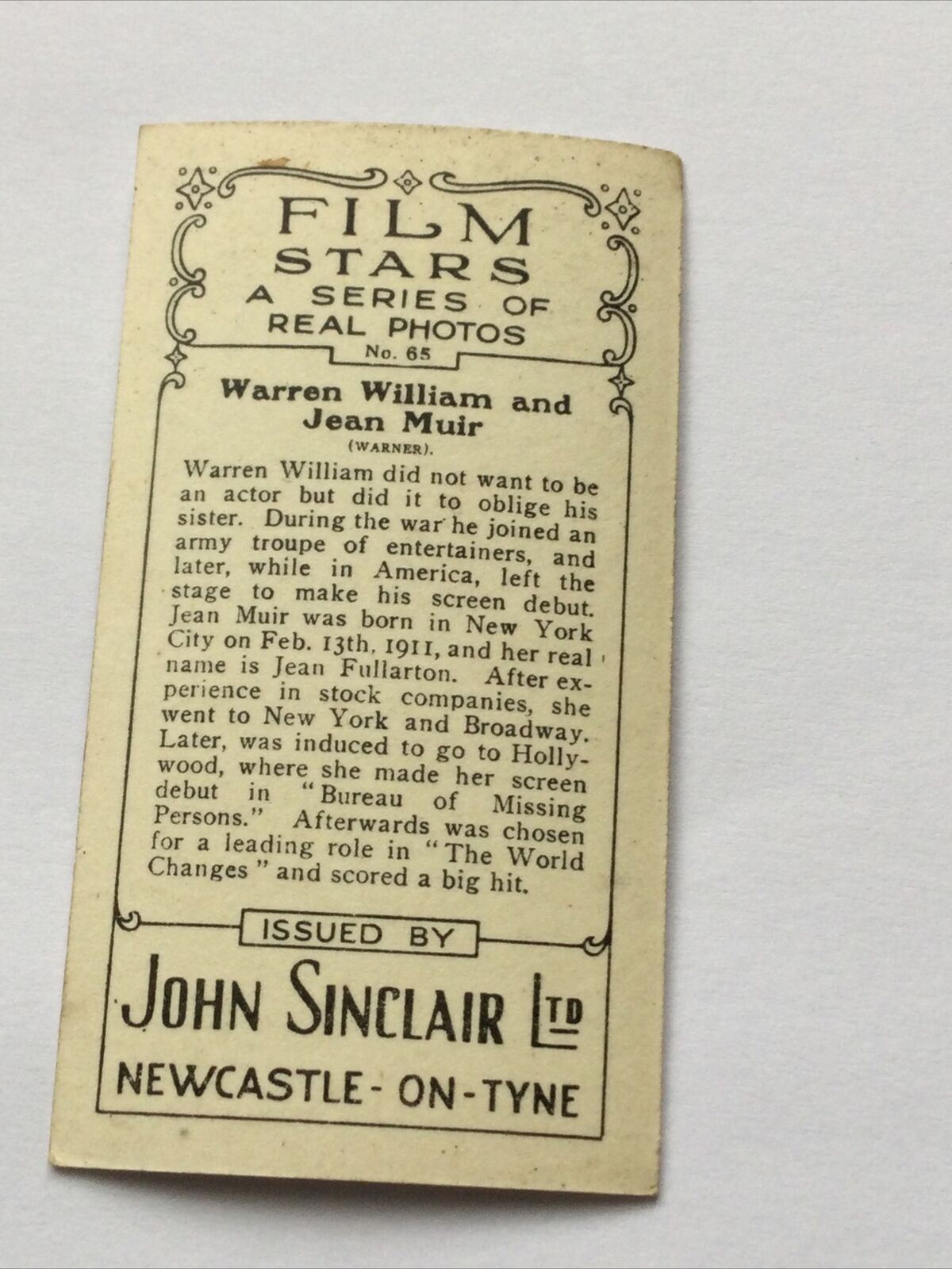 JEAN MUIR WARREN WILLIAM Photo - John Sinclair Cigarette Card Film Stars #65