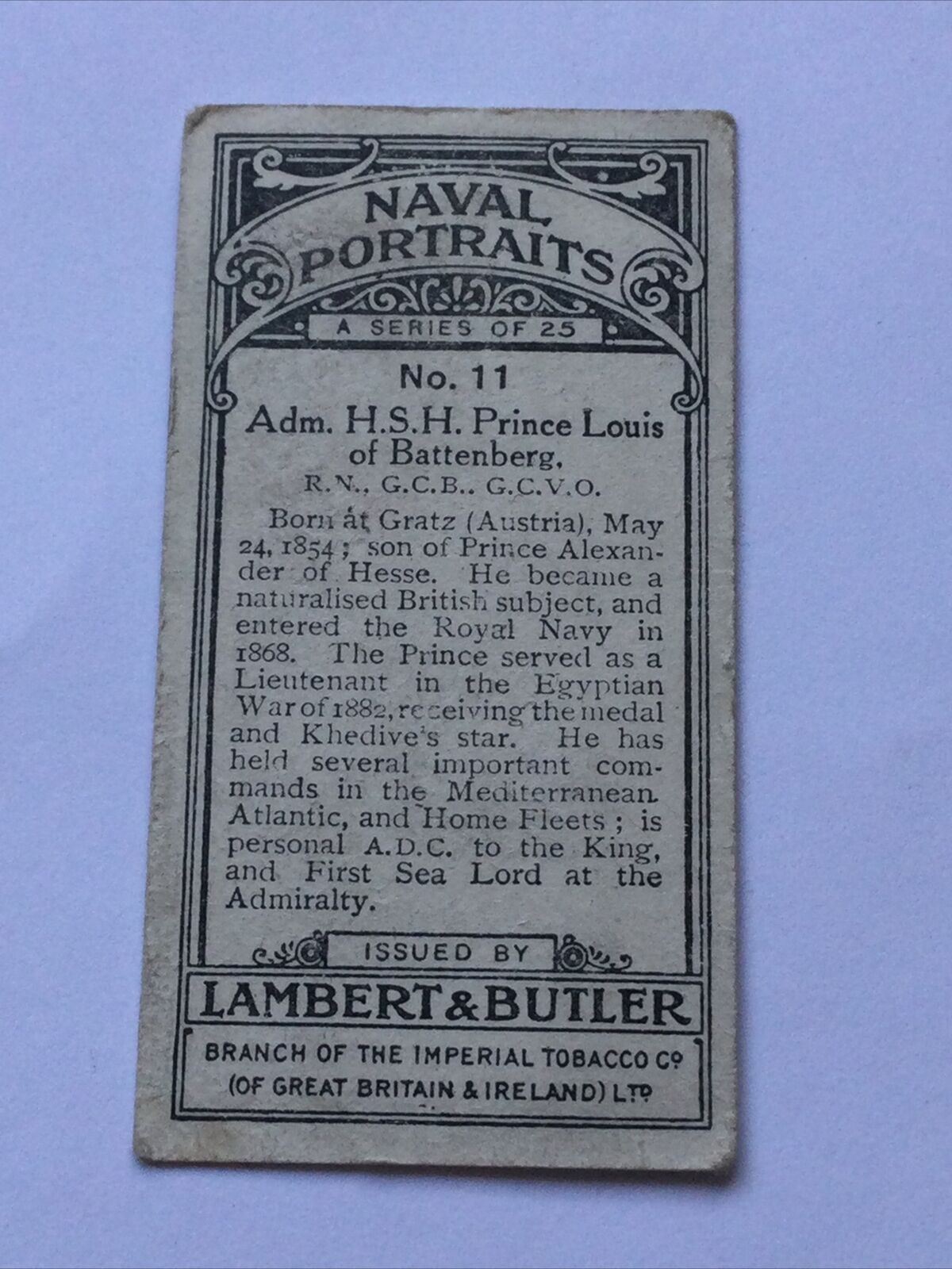 Lambert & Butler Card - Naval Portraits #11 Adm HSH Prince Louis Battenberg