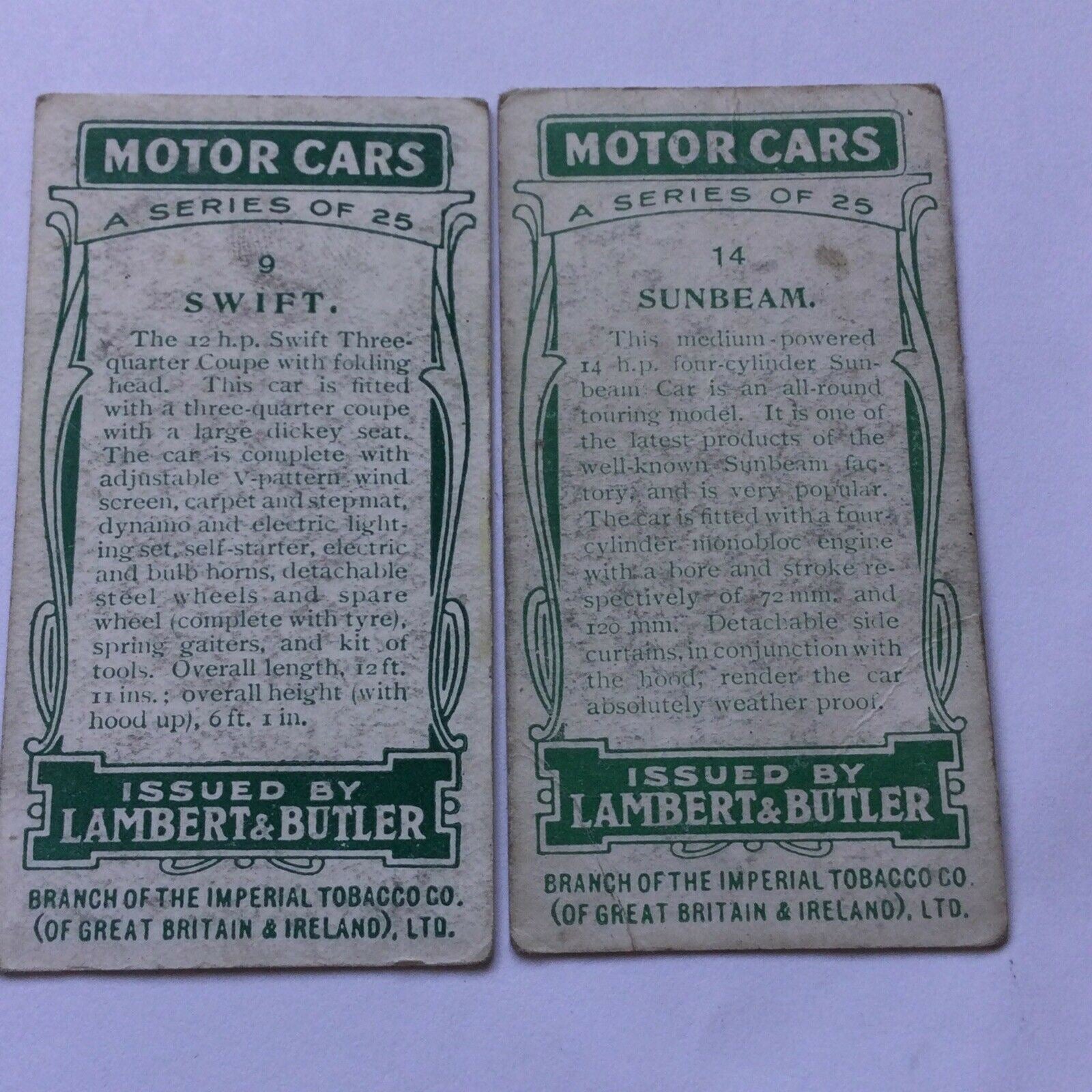 LAMBERT & BUTLER CIGARETTE CARDS x 2 - MOTOR CARS - #9 Swift #14 Sunbeam