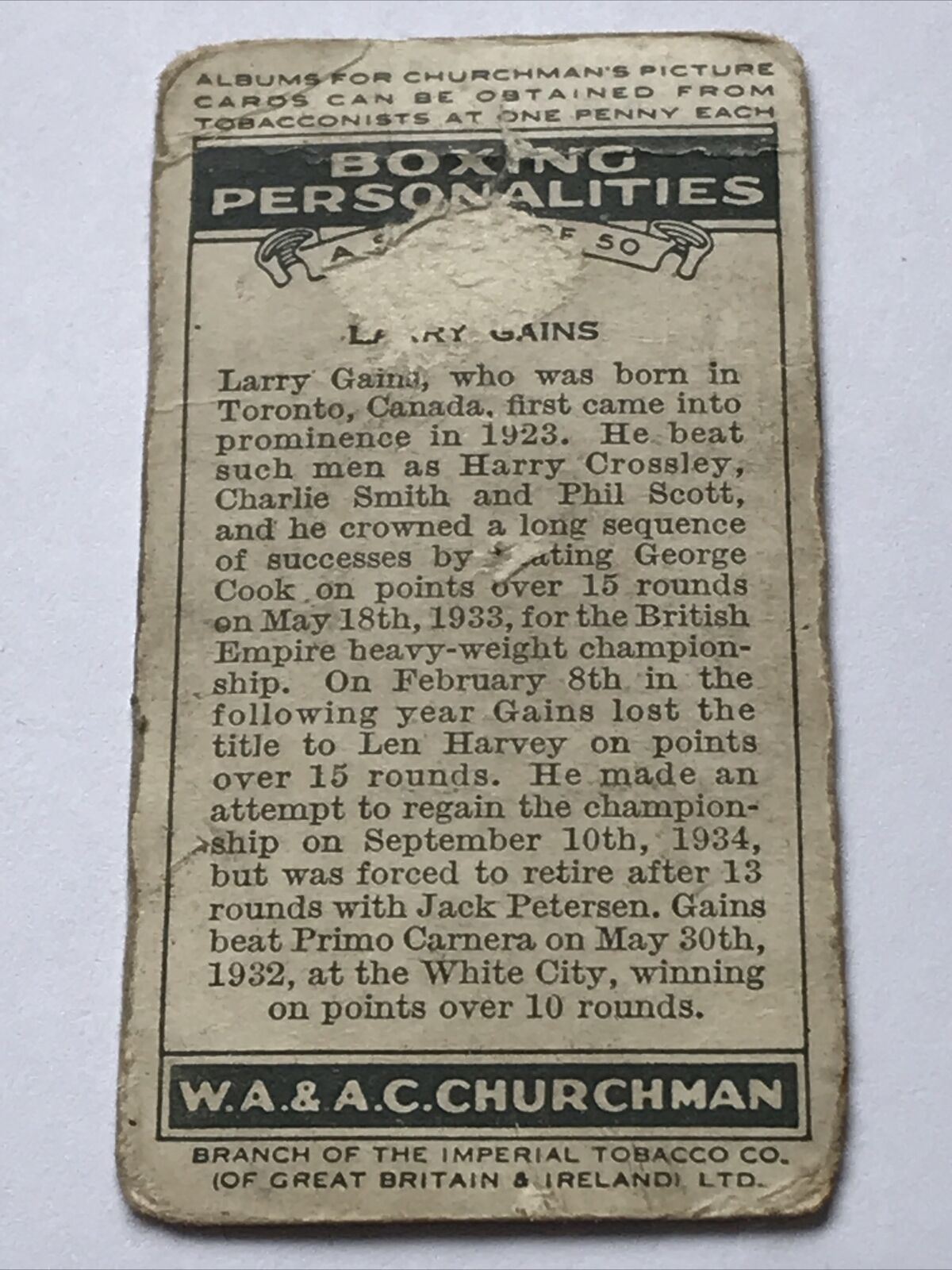 LARRY GAINS Churchmans Cigarette Card Boxing Personalities DAMAGED 1930s