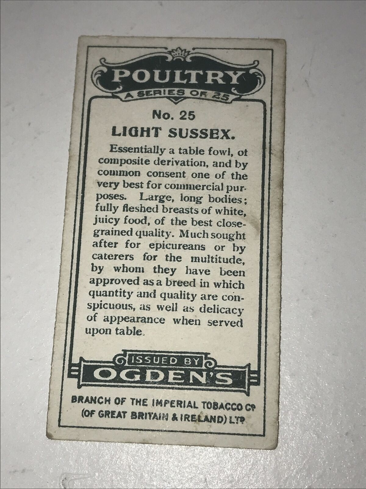 LIGHT SUSSEX Ogden’s Cigarette Card, Poultry #25 Hen Cock Fowl Vintage Print