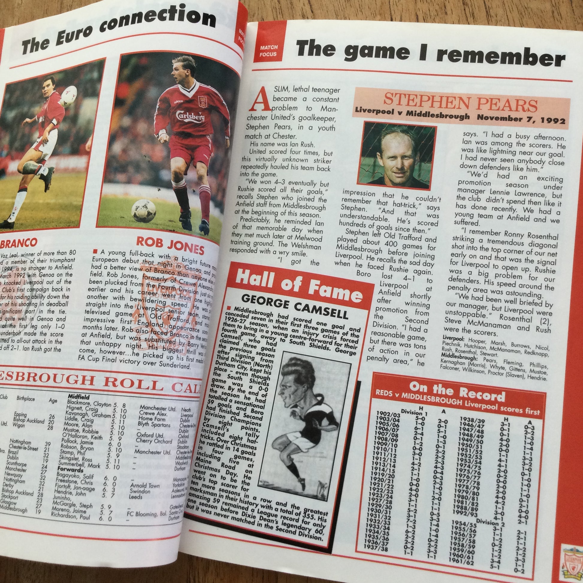 Liverpool FC V Middlesborough Premier League 27/04/96 1995-96 Programme. David James