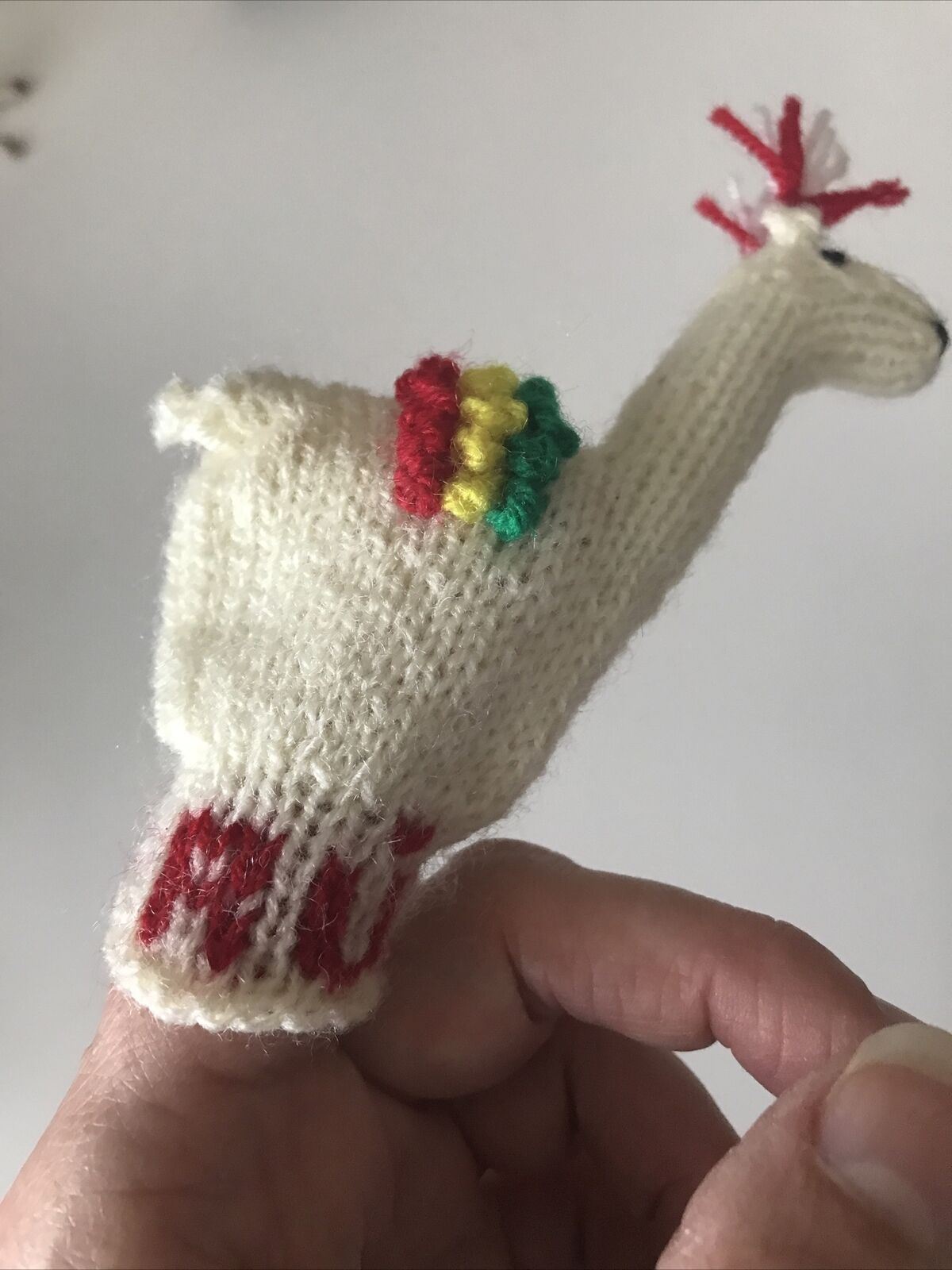 Llama Peru Knitted Finger Puppet. Cute Bright Sweet. Fun Kids Gift.