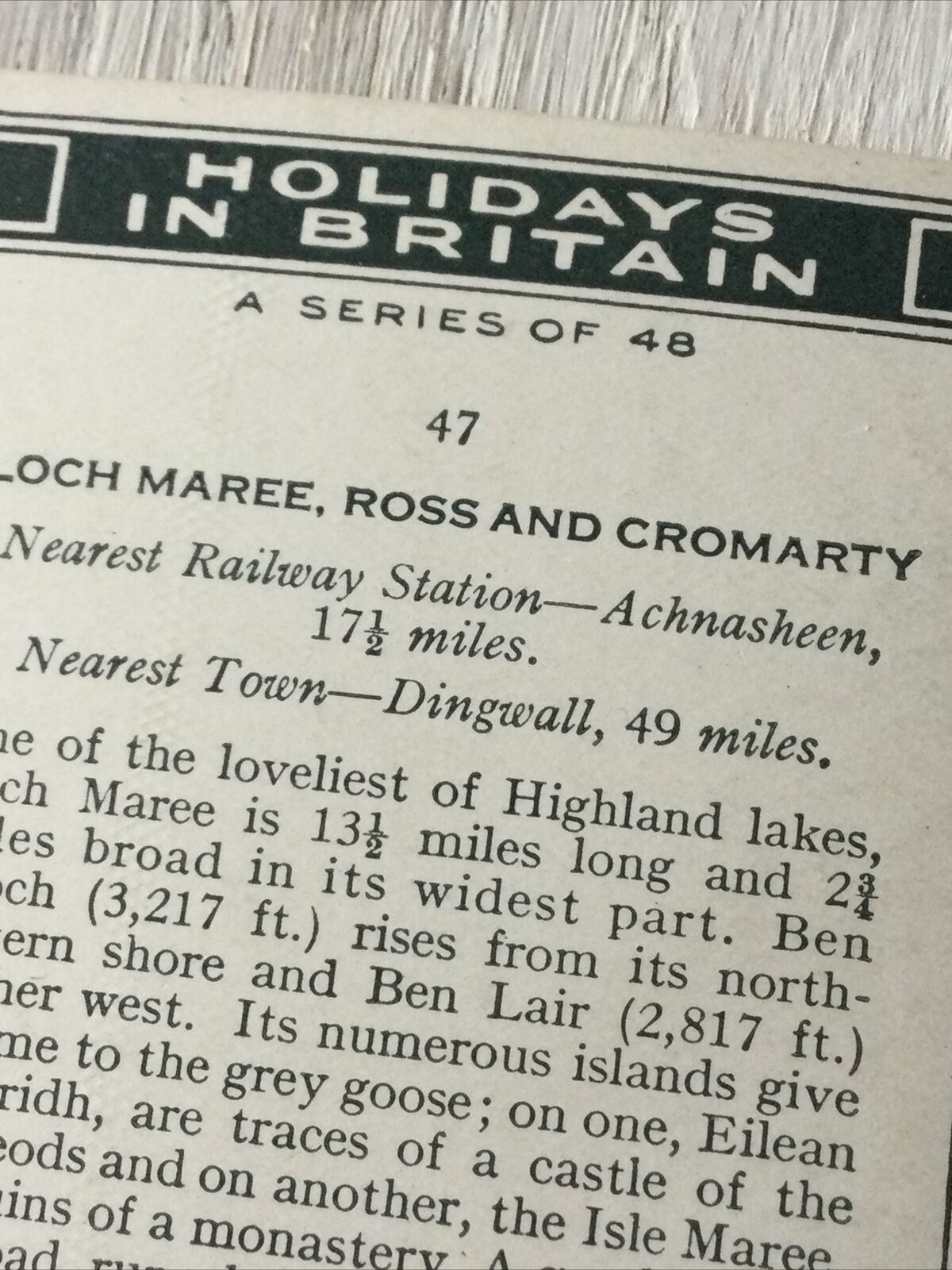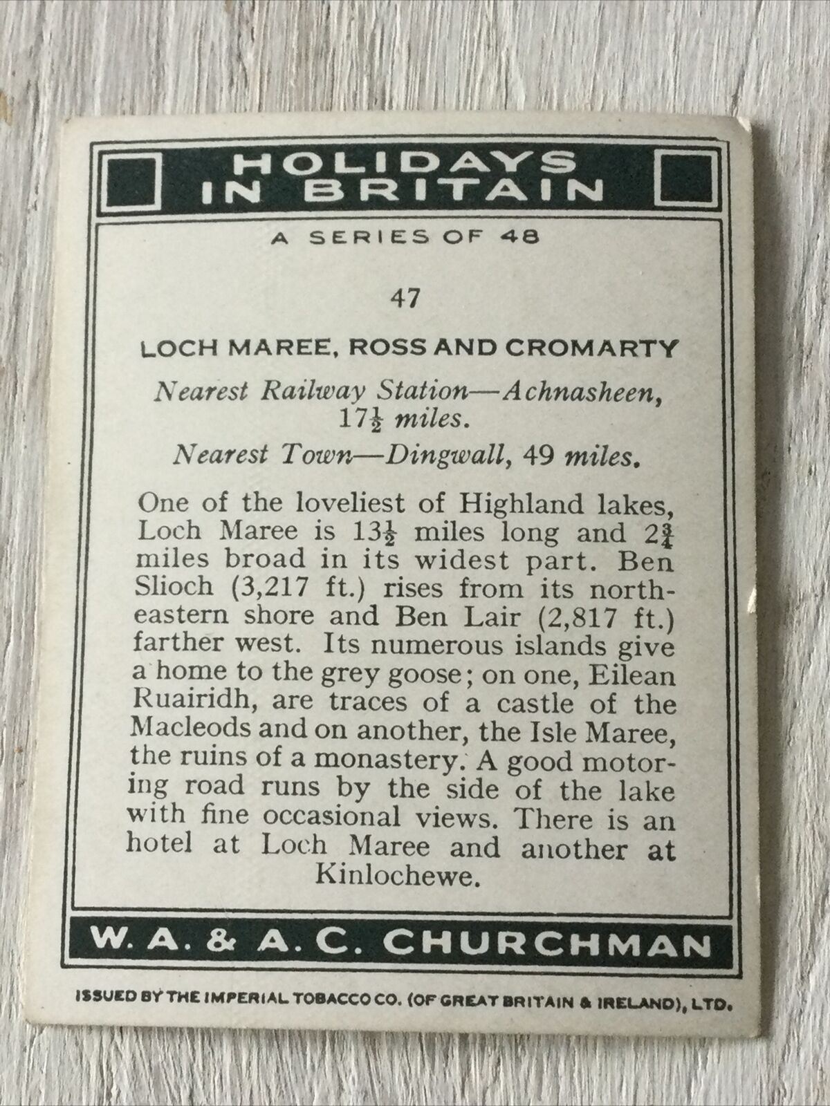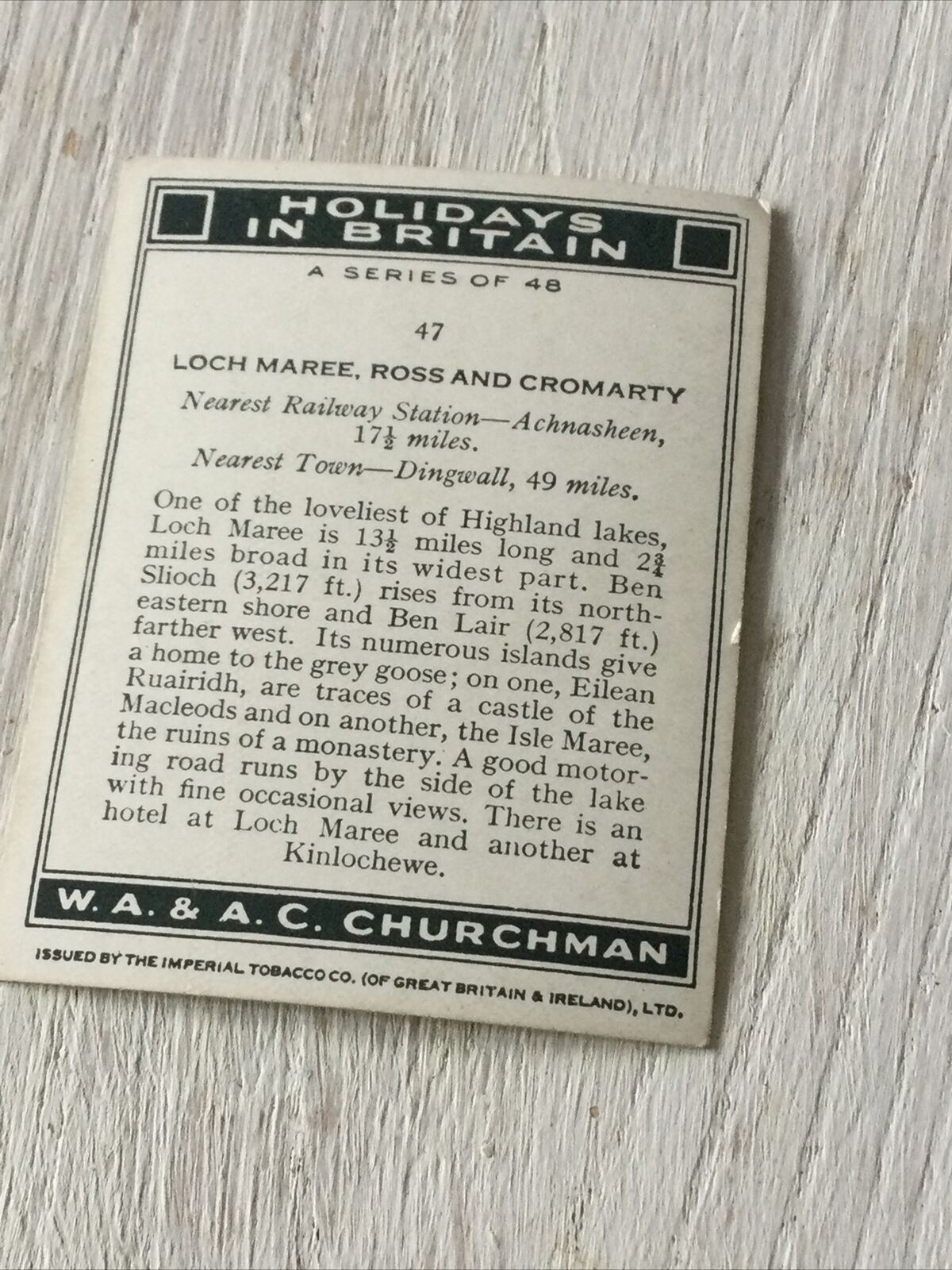 Loch Maree Ross & Cromarty Vintage Cigarette Card Holidays In Britain #47. Condition is "Used". Dispatched with Royal Mail 2nd Class Letter.