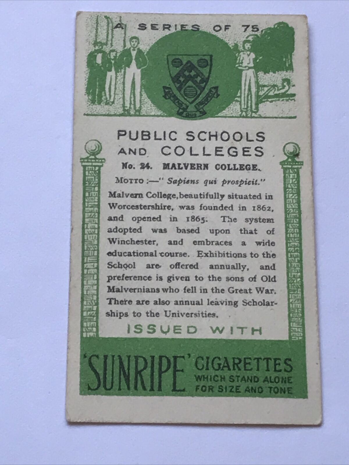 MALVERN COLLEGE SUNRIPE PUBLIC SCHOOLS & COLLEGES 1923 Card No 24 1920s Vintage