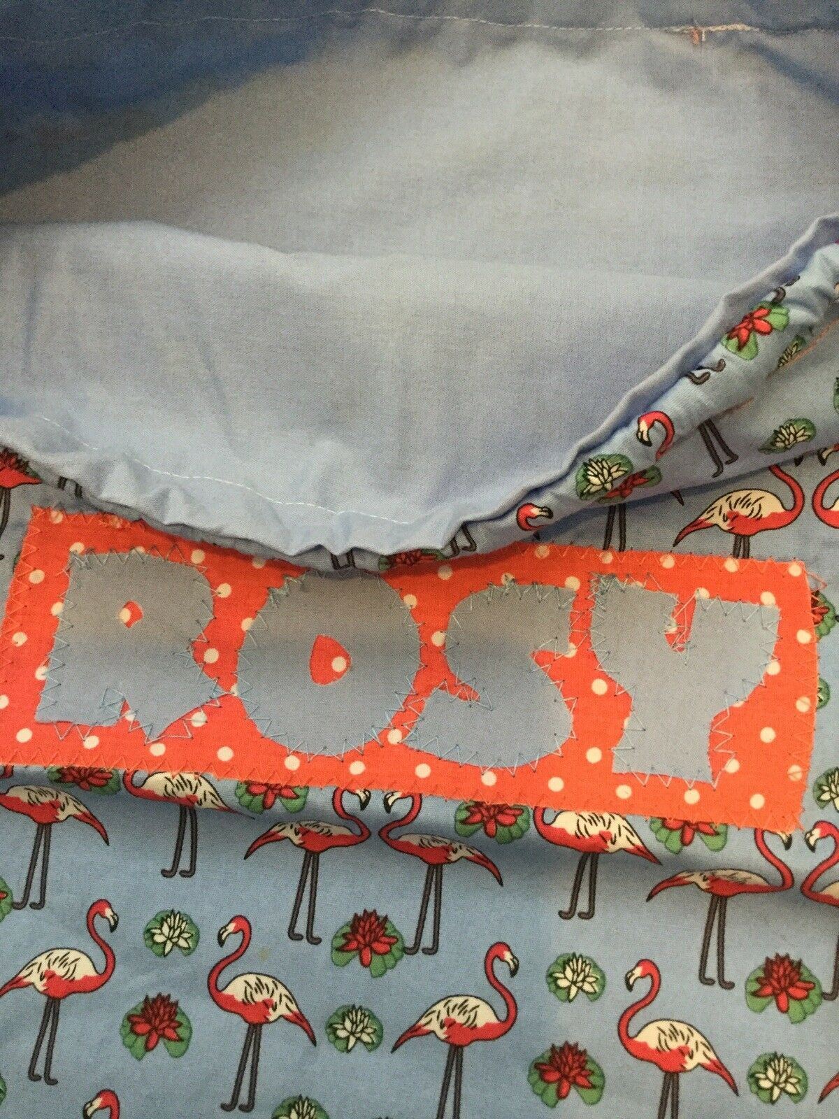 Medium Drawstring Bag. Approx 39 x 34 cm. Flamingo. PERSONALISED ‘ROSY’ Pretty