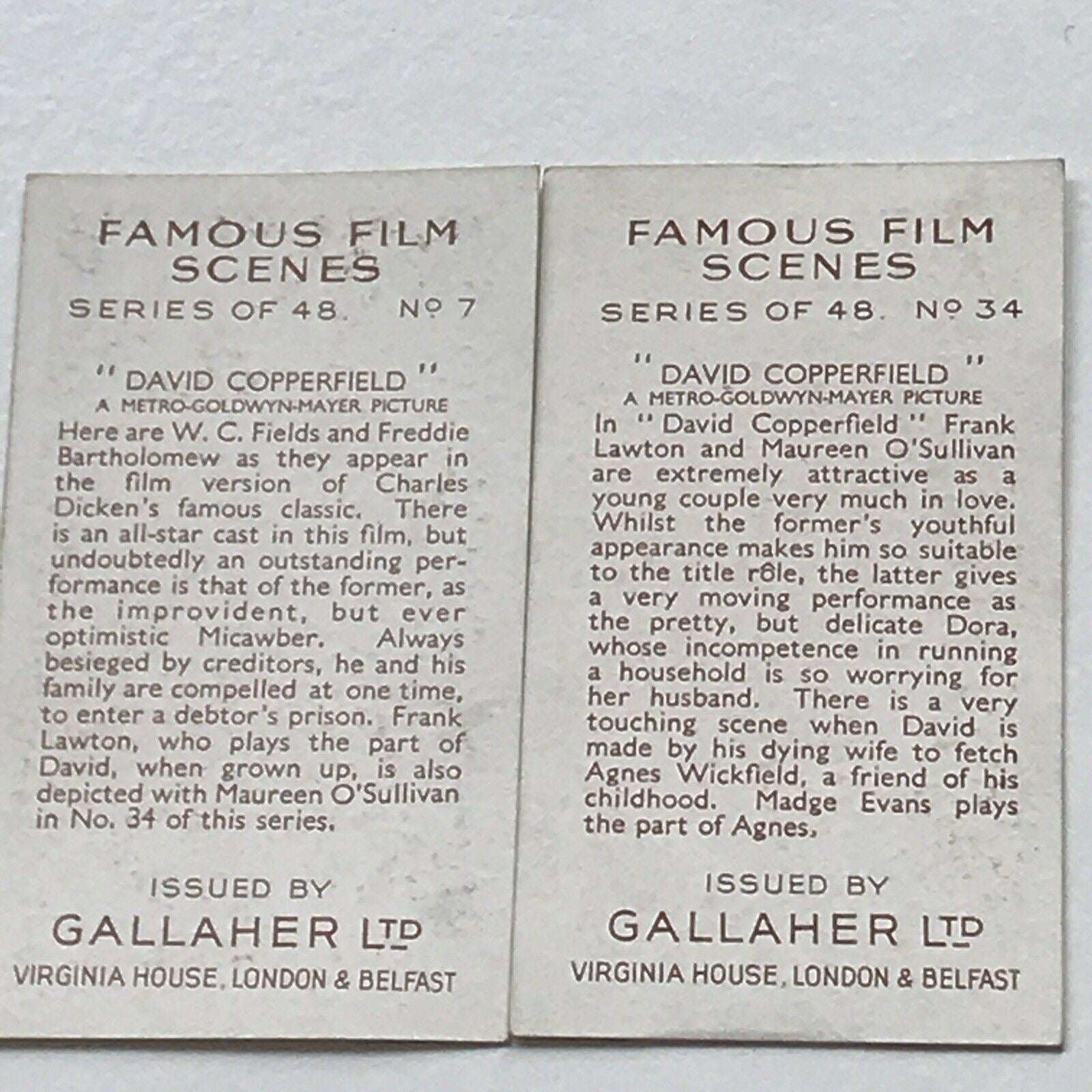 MGM DAVUD COPPERFIELD FILM MOVIE MEMORABILIA. 2 x Cigarette Cards Gallaher