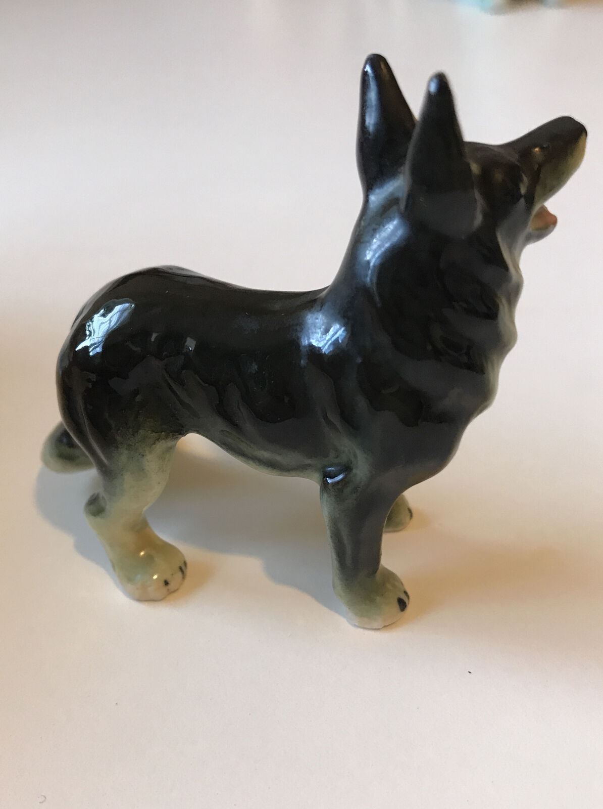 Mini Alsatian German Shepherd Dog Ornament Figurine. Tongue Out! 6cm High.