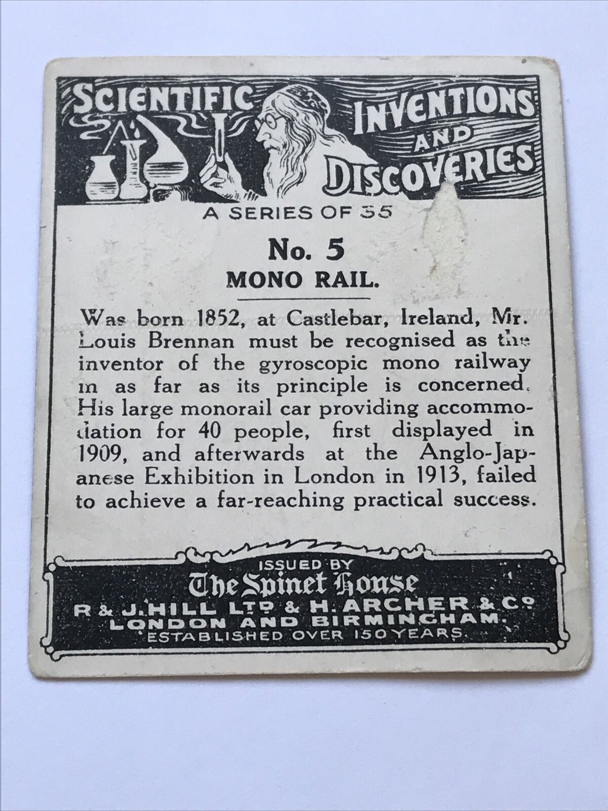 Mono Rail SPINET HOUSE CIGARETTE CARD #5 Scientific Inventions & Discoveries