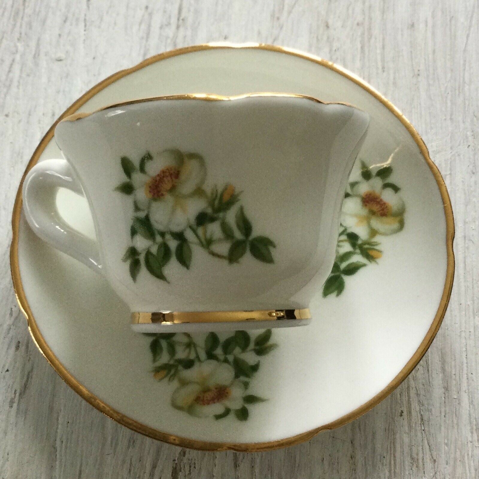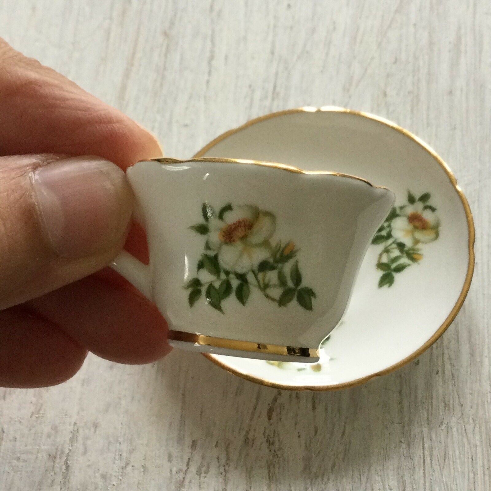 National Trust Miniature Cup And Saucer Oakley China Dog Rose Design Wild Rose