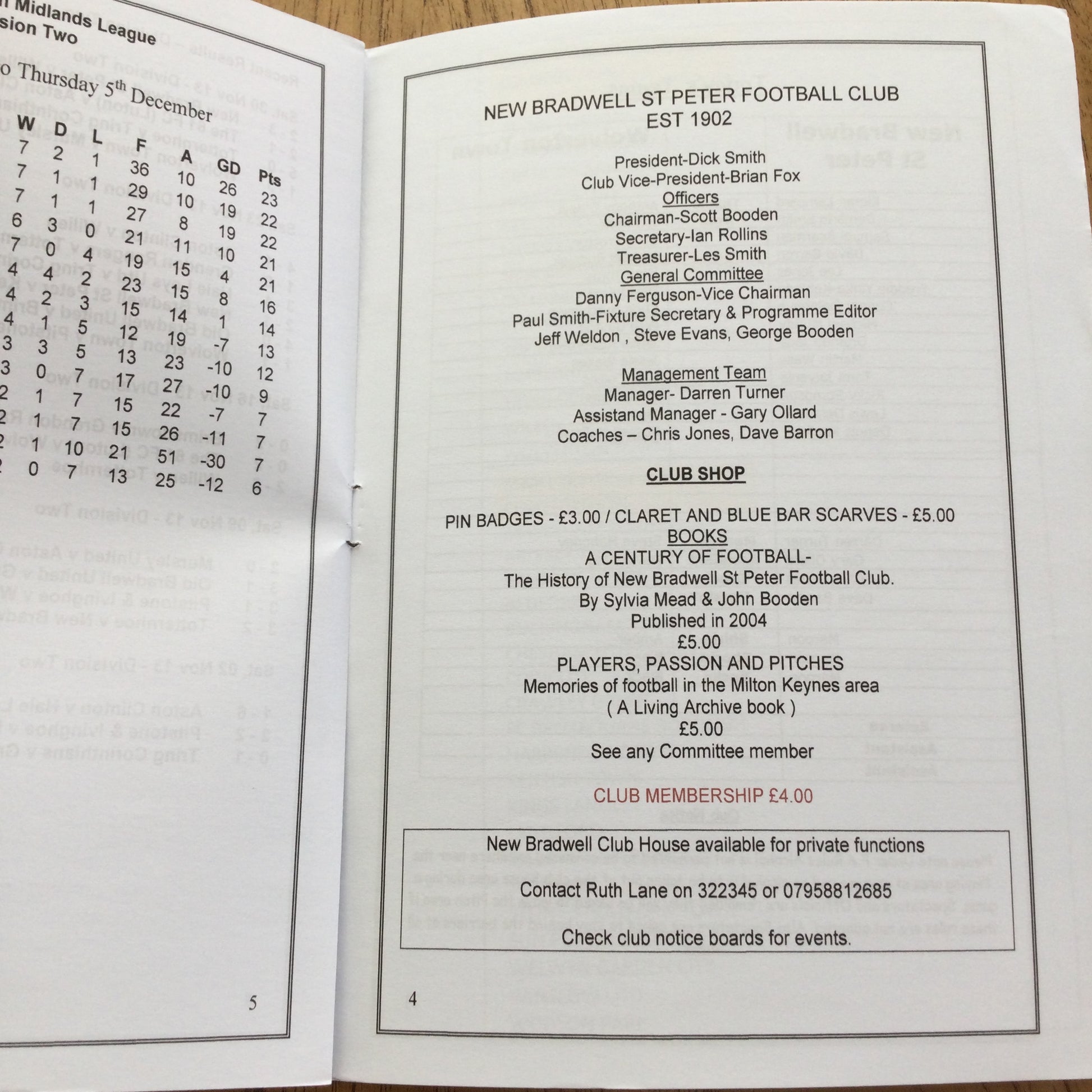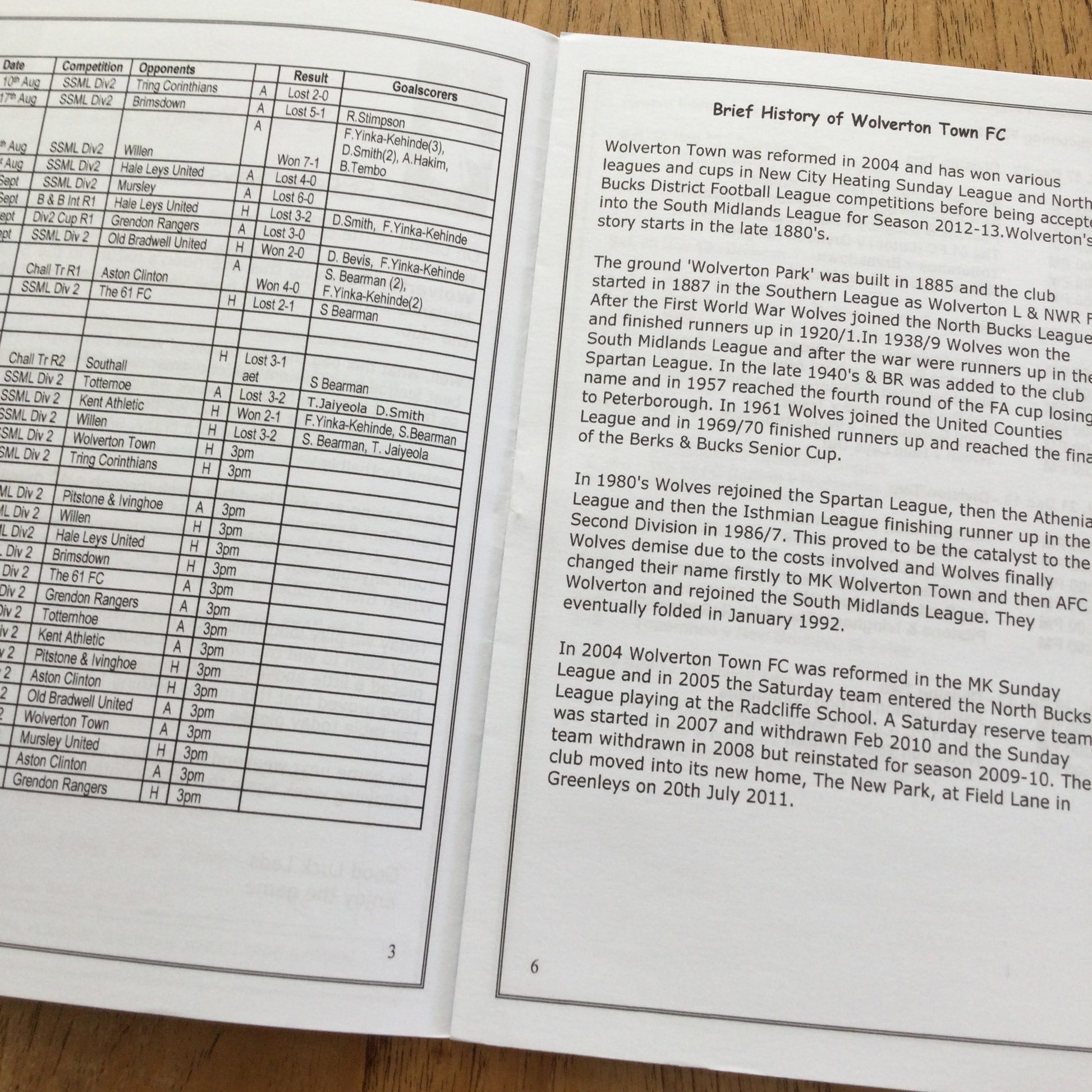 New Bradwell St.Peter v Wolverton Town Football Programme. 2013. Sam Bearman, Tomi Jaiyeola