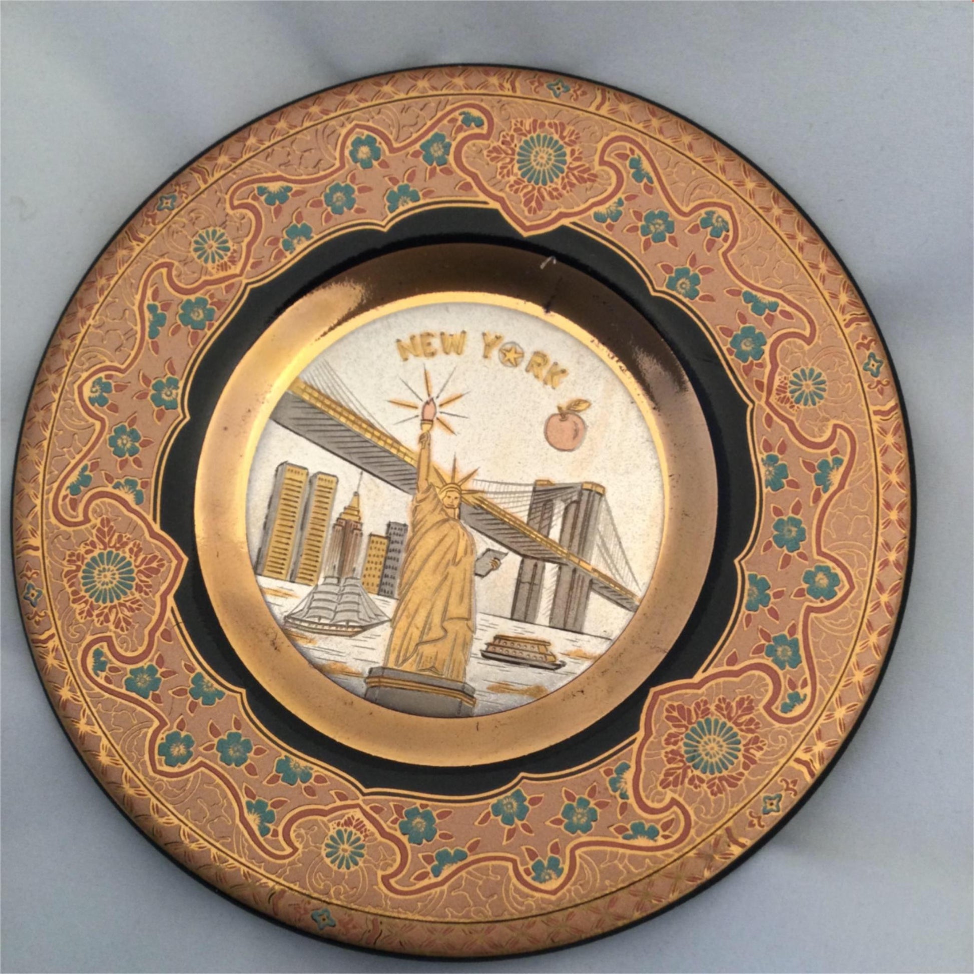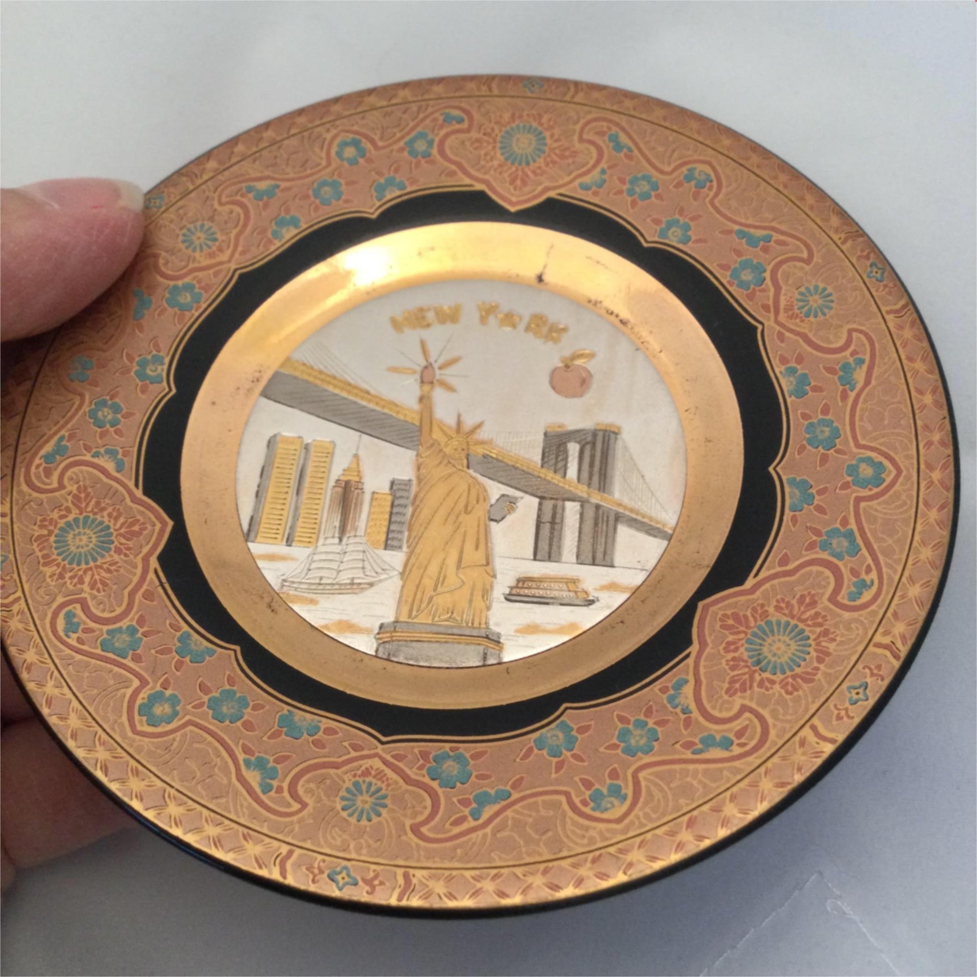New York Souvenir pin dish 4 inch. The Art of Chokin. Statue of Liberty. Gold