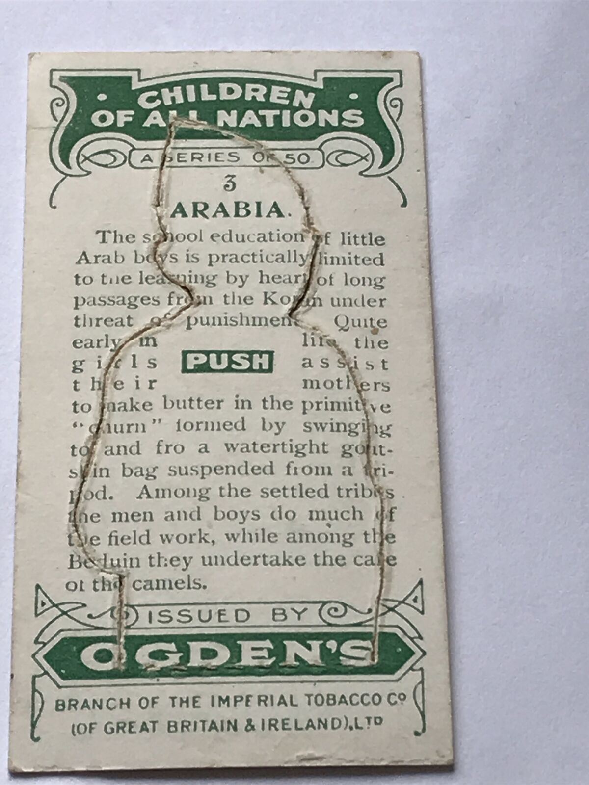 OGDENS CHILDREN OF ALL NATIONS Cards Cut-out Version ARABIA #3 Arabian Boy 1924.