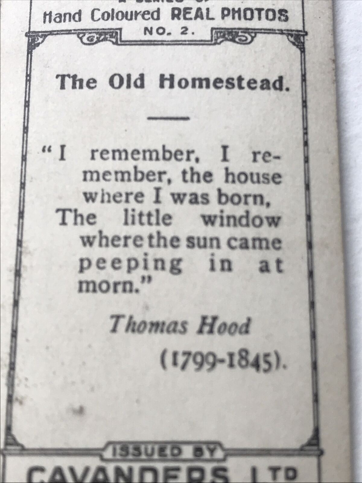 Cavanders Cigarette Card - Camera Studies - No. 2 OLD HOMESTEAD - Hand Coloured Photo